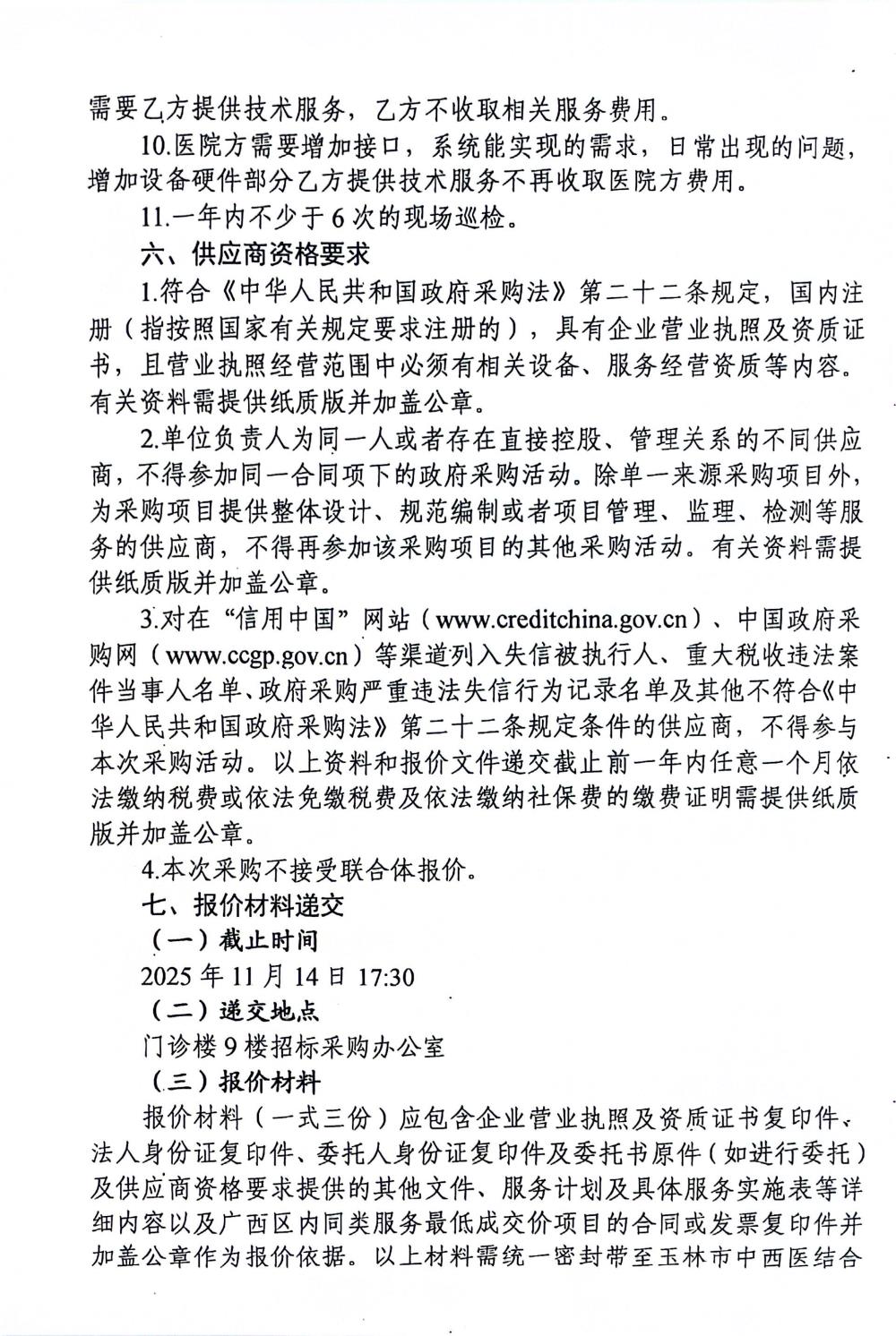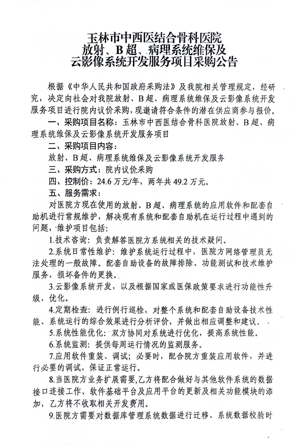 玉林市中西医结合骨科医院放射、B超、病理系统维保及云影像系统开发服务项目采购公告
