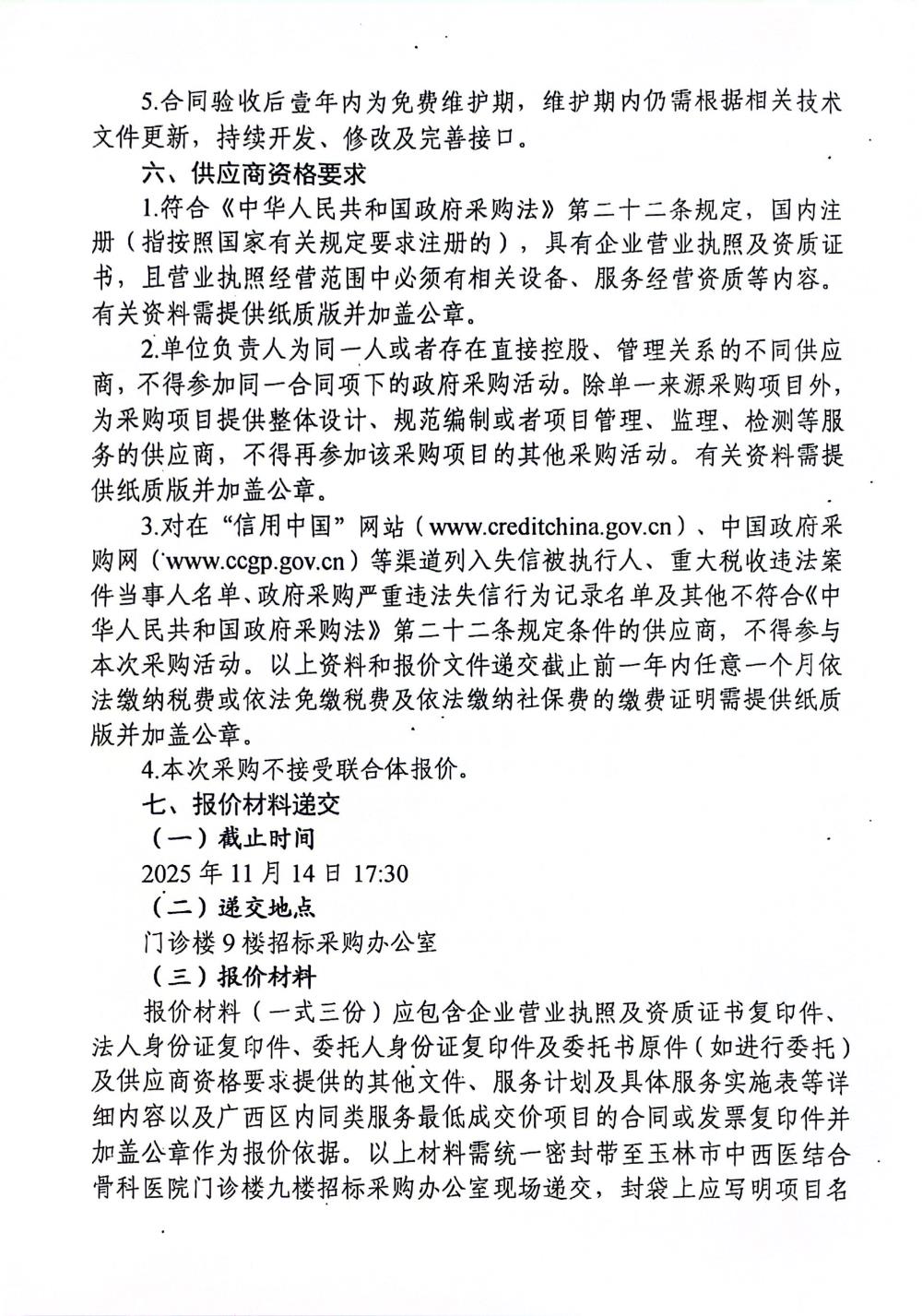 玉林市中西医结合骨科医院全民健康信息平台数据采集接口开发服务项目采购公告
