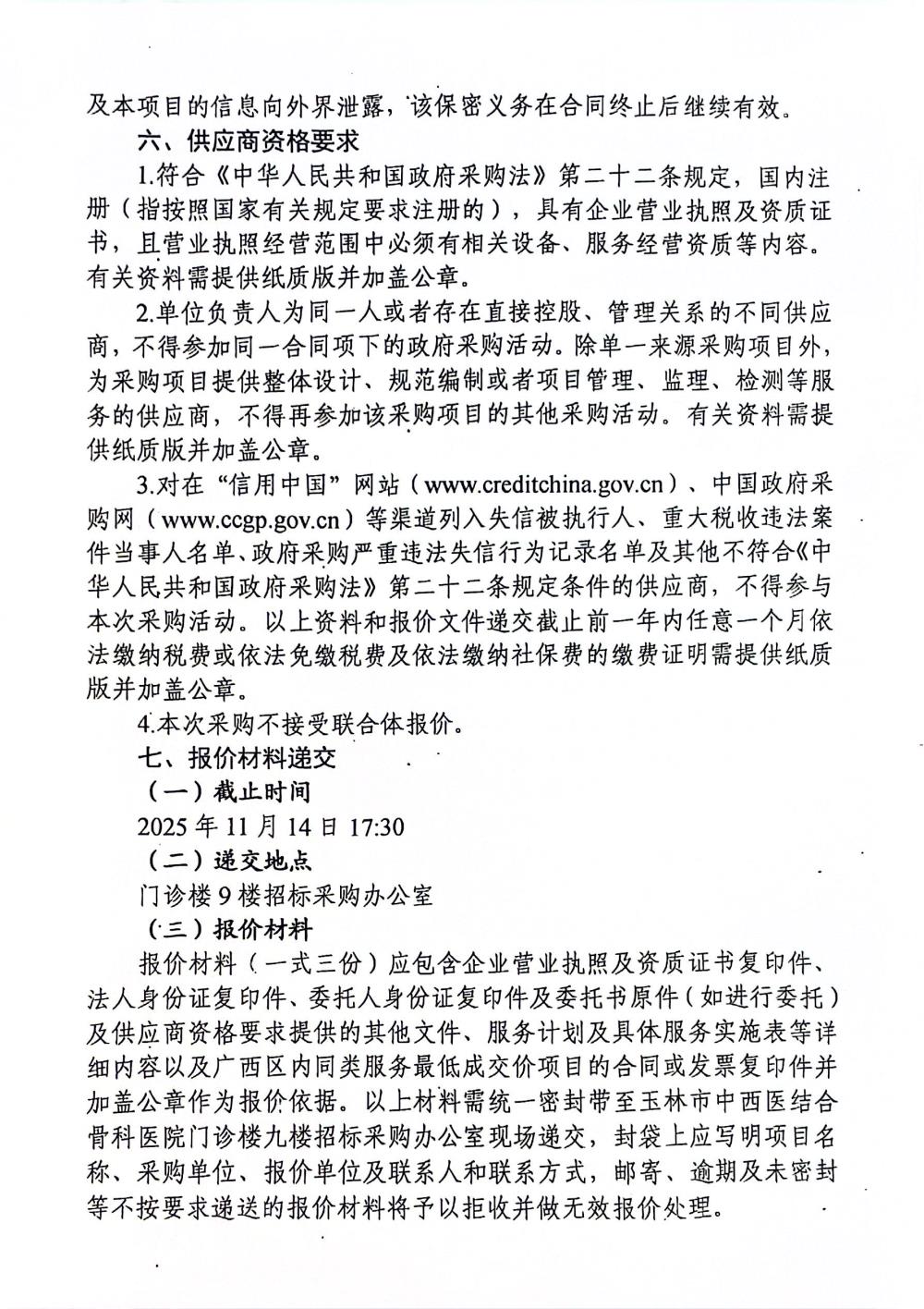 玉林市中西医结合骨科医院全民健康信息平台数据采集接口开发服务项目采购公告