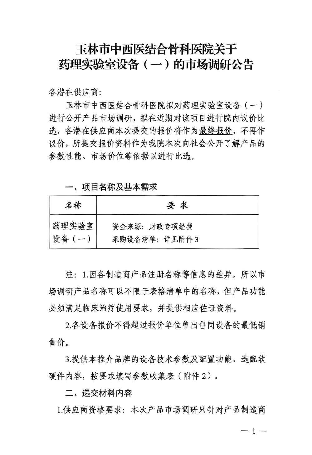 玉林市中西医结合骨科医院关于药理实验室设备(一)的市场调研公告