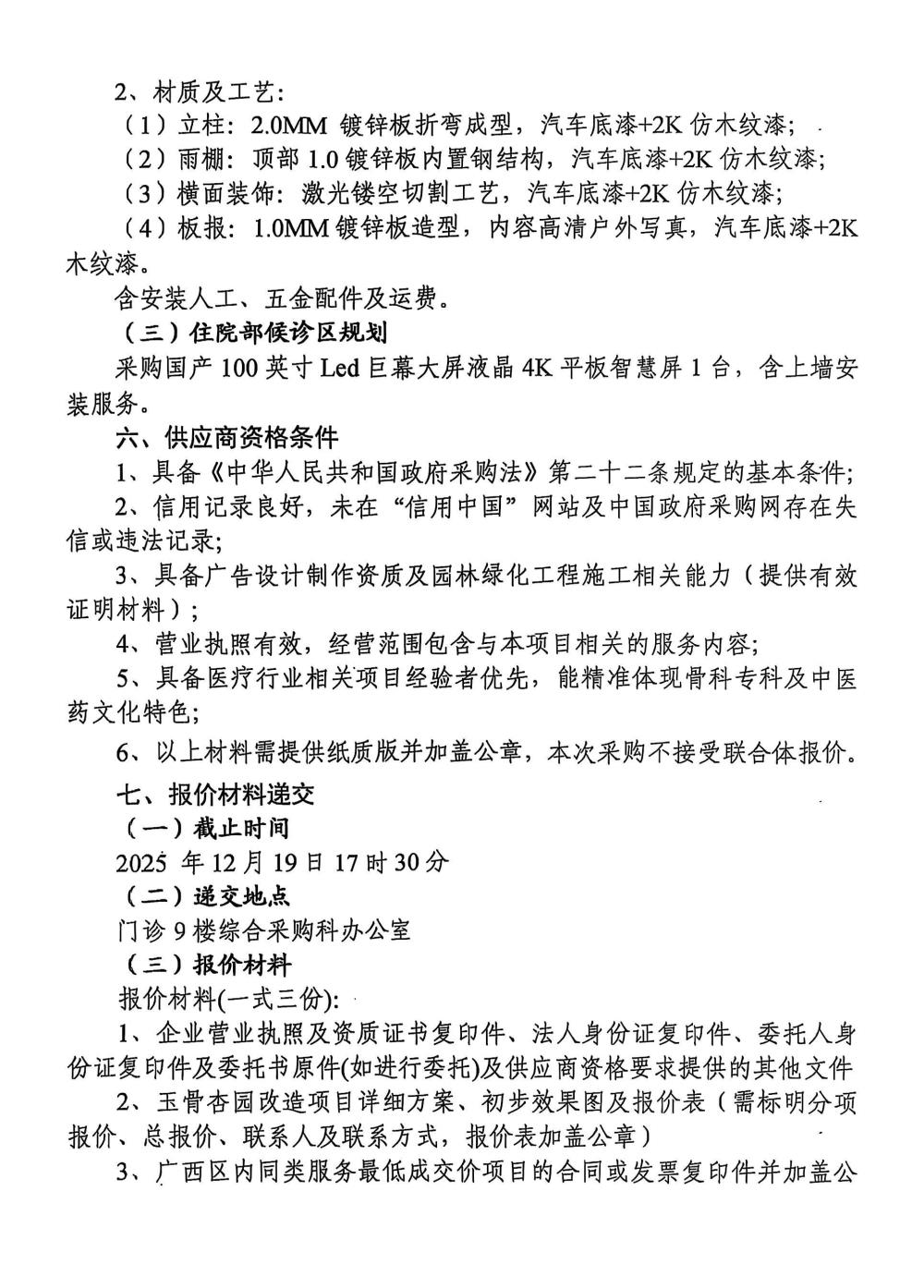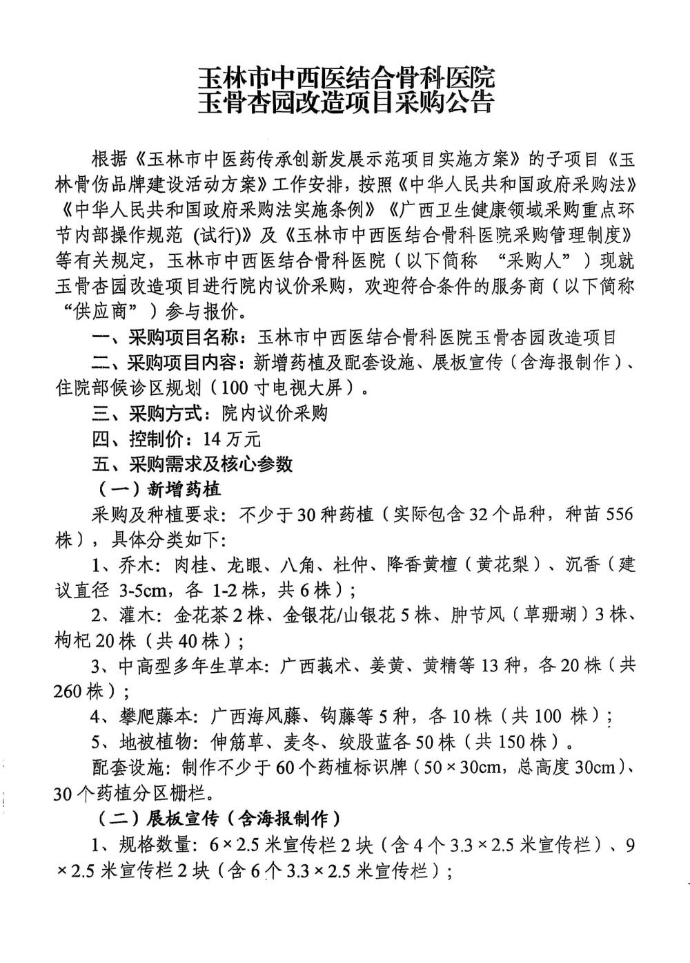 玉林市中西医结合骨科医院玉骨杏园改造项目采购公告