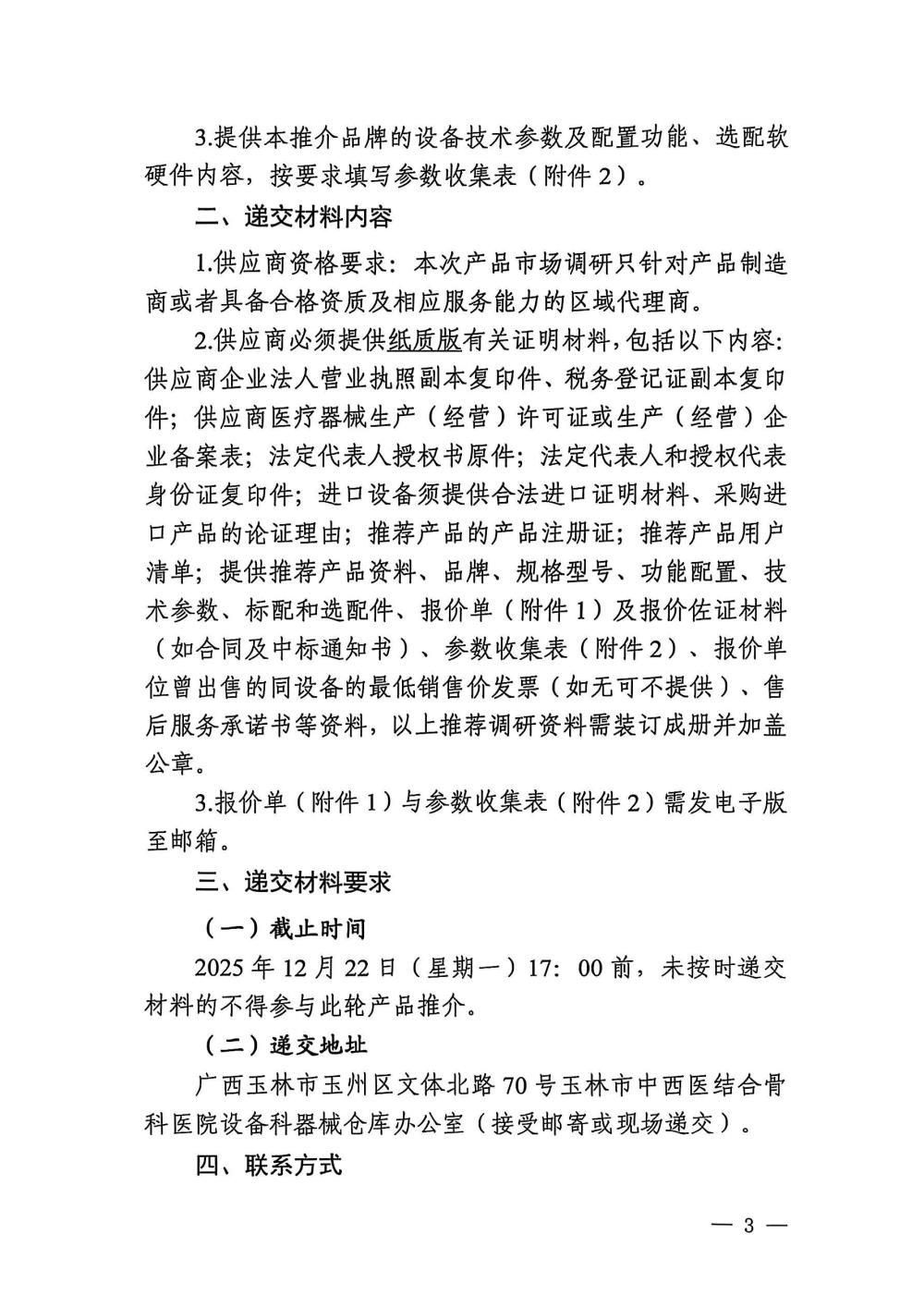 玉林市中西医结合骨科医院关于椎间孔镜维修服务市场调研公告
