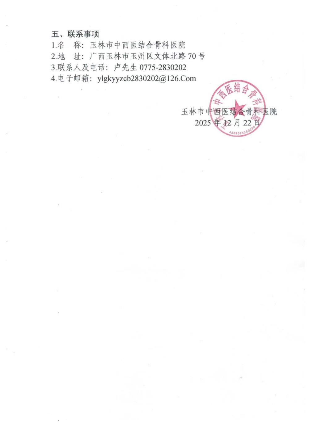 玉林市中西医结合骨科医院除颤仪采购项目采购公告
