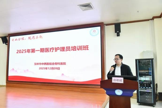12月9日,玉林市中西医结合骨科医院联合广西玉林技师学院、广西佳佳陪护机构服务有限公司、广西陪陪我健康科技有限公司,成功举办首期医疗护理员培训班。此次培训既是医院贯彻落实国家“加强医疗护理员培训与规范管理”政策的重要举措,也旨在系统提升学员在患者日常照护、康复支持及安全防护等方面的专业技能,致力于培养一支符合行业标准、岗位胜任力强的医疗护理员队伍,从而进一步夯实优质护理服务体系,更好地满足人民群众多层次、多元化的健康服务需求。