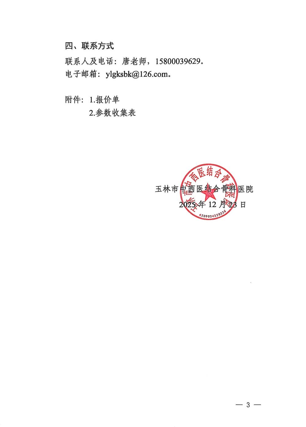 玉林市中西医结合骨科医院关于椎间孔镜镜头的市场调研公告