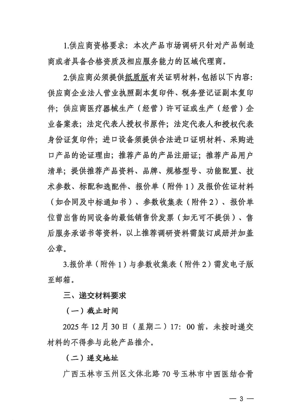 玉林市中西医结合骨科医院关于干扰电治疗仪的市场调研公告