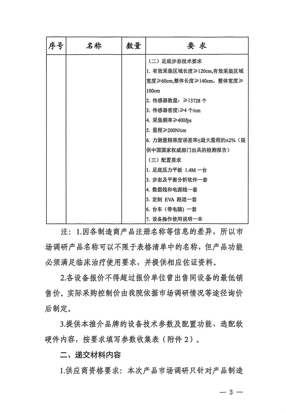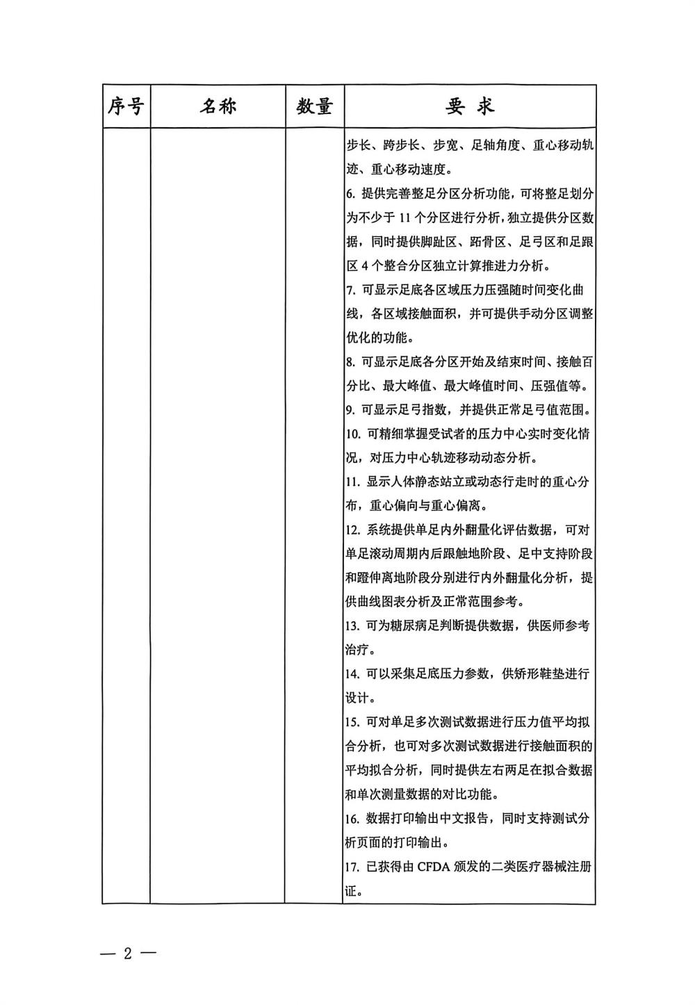 玉林市中西医结合骨科医院关于足底压力步态评估系统的市场调研公告