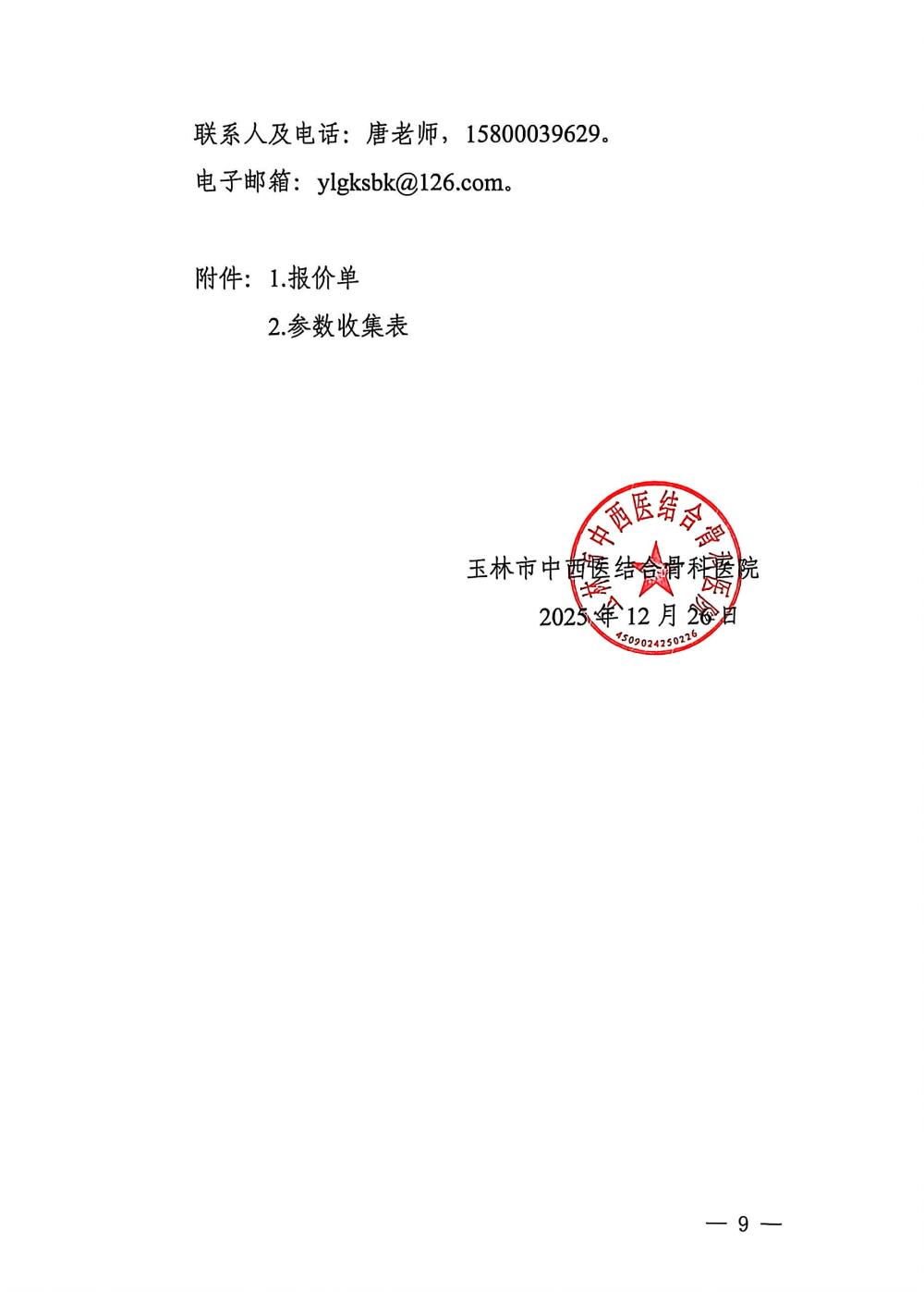 玉林市中西医结合骨科医院关于三维激光双足底扫描仪的市场调研公告