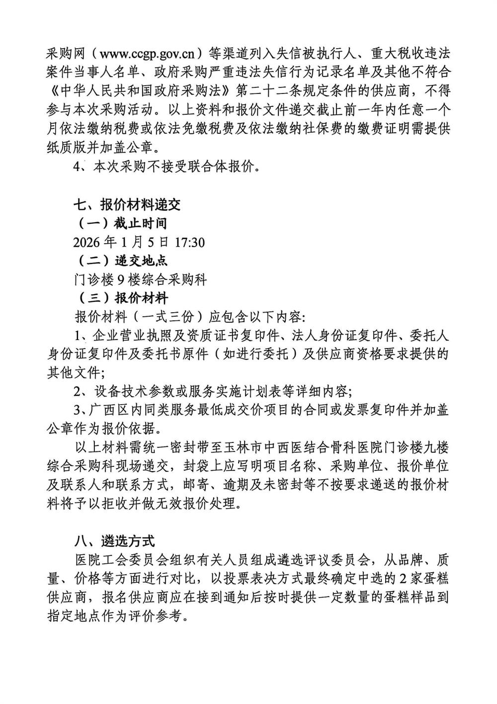 玉林市中西医结合骨科医院2026至2027年度职工生日蛋糕供应商遴选公告