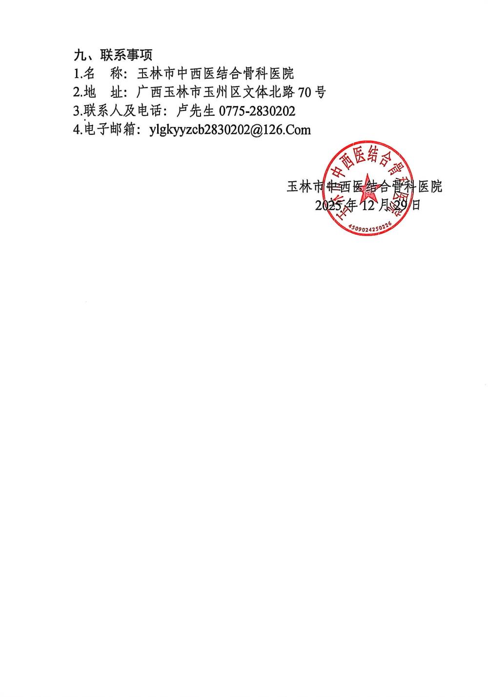 玉林市中西医结合骨科医院岐黄工坊・中医适宜技术教学基地建设项目市场调研公告