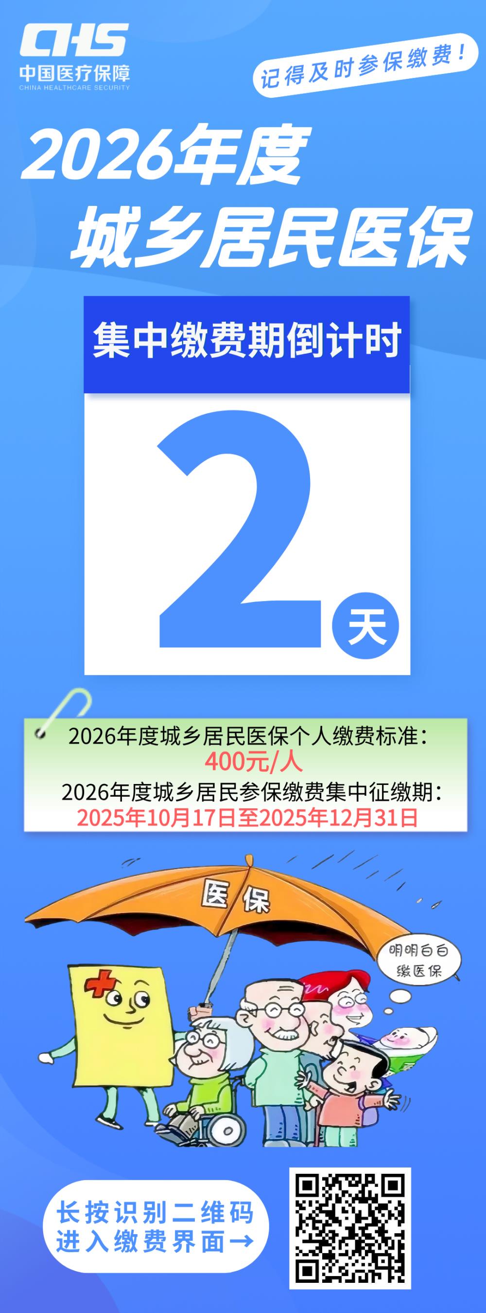 最后两天!2026年度城乡居民医保集中缴费期倒计时2天!错过将有待遇等待期,等待期内医保无法报销!(附:缴费指南链接)
