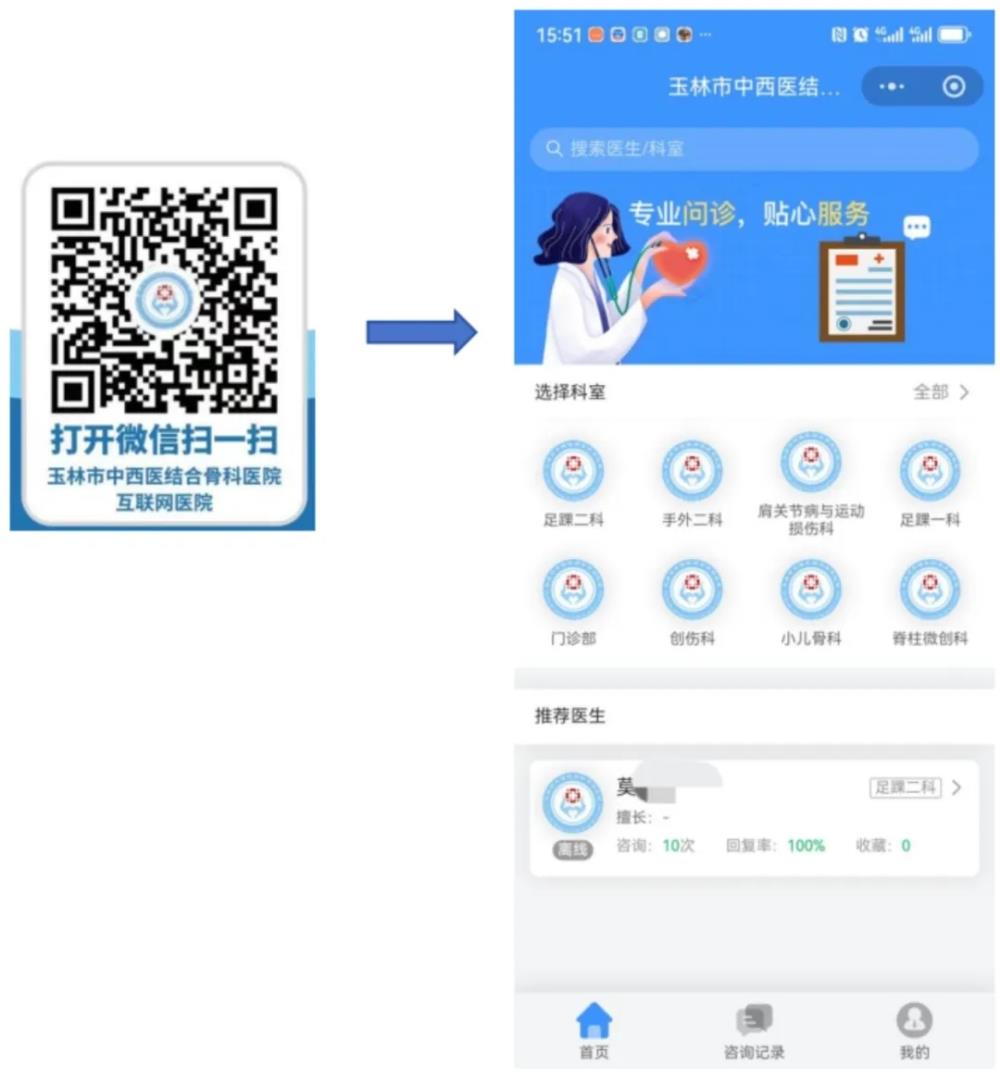 方法②:搜索微信小程序“玉林市中西医结合骨科医院”可直接进入。
