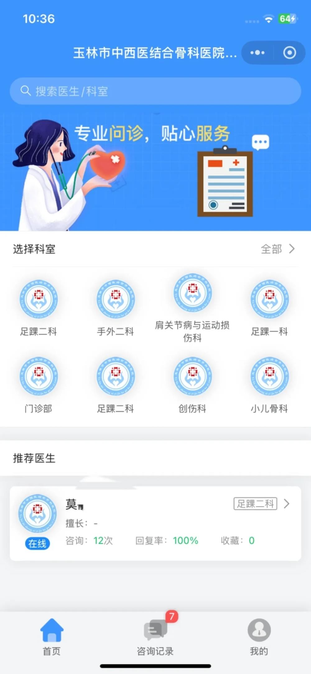 为进一步改善患者就医感受,提升患者就医体验,玉林市中西医结合骨科医院互联网医院(下称“互联网医院”)12月22日正式上线。广大患者复诊、购药、药品邮寄、查看检查检验报告等均可在线完成(初诊、急诊患者需线下就诊),无需再为排队、等待、奔波而烦恼。