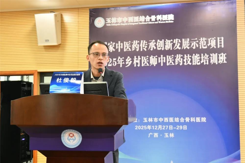 为深入贯彻国家中医药传承创新发展示范项目精神,切实提升基层乡村医师中医药服务能力,推广中医适宜技术,筑牢农村健康防护网,12月27日至29日,由玉林市中西医结合骨科医院主办的2025年乡村医师中医药技能培训班(适宜技术推广学习班)在该院圆满举办。来自容县、陆川县、福绵区的130名乡村医师齐聚一堂,通过“理论+实操”的系统培训,夯实中医药服务功底,助力中医药在基层落地生根。