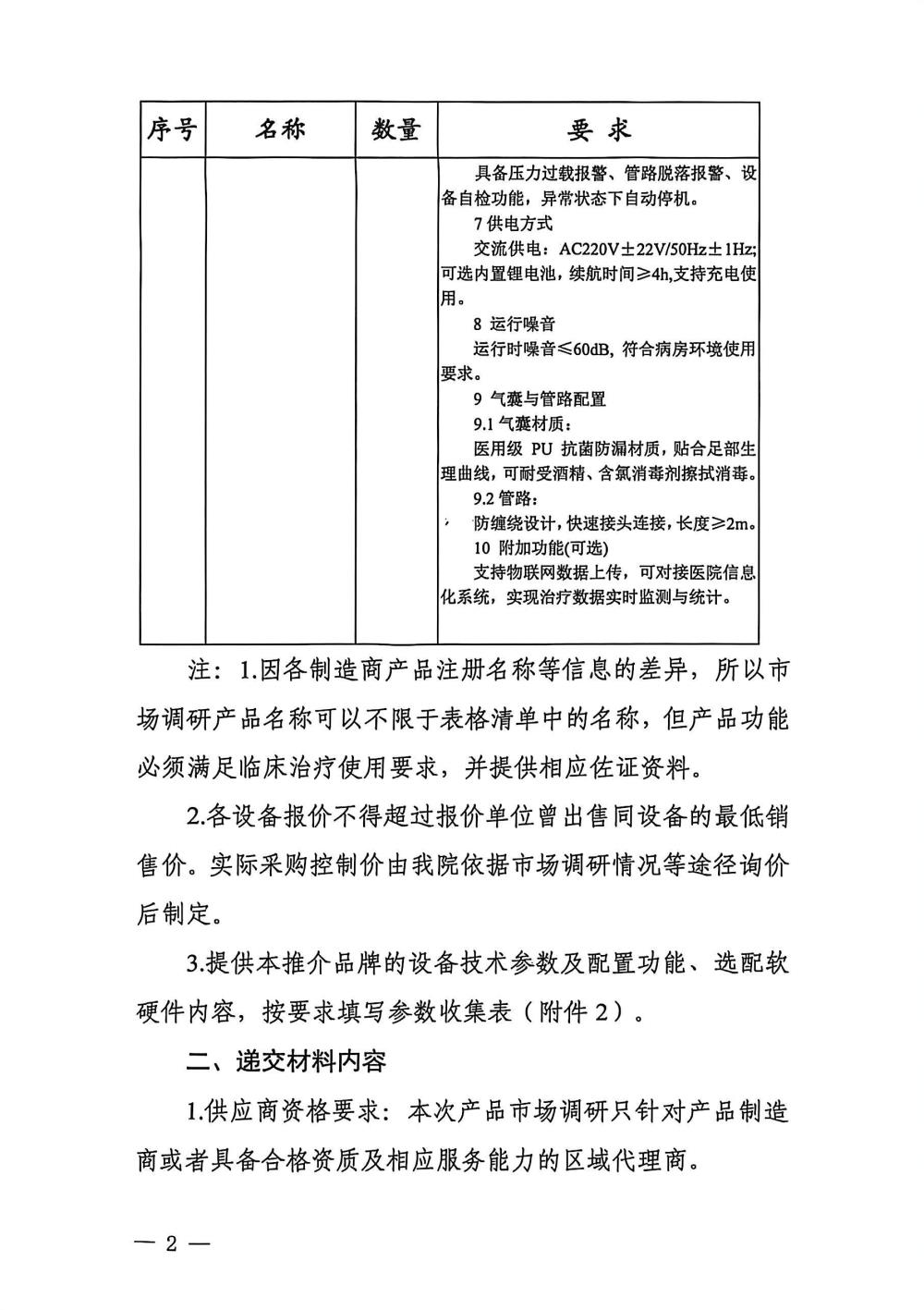 玉林市中西医结合骨科医院关于足底静脉泵的市场调研公告
