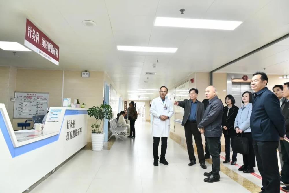 1月6日,自治区卫生健康委党组成员、区中医药管理局局长黎甲文一行,带着对玉林中医药事业发展的深切关怀与殷切期望莅临玉林市中西医结合骨科医院,就“国家中医药传承创新发展示范项目”的推进工作开展实地调研指导。自治区中医药管理局医政处副处长、三级调研员覃杰,玉林市政府副秘书长吕湖川,玉林市卫生健康委副主任杨媚,医院党委书记陈正其,院长唐继仁、副院长陈涛以及各相关职能部门负责人陪同调研。
