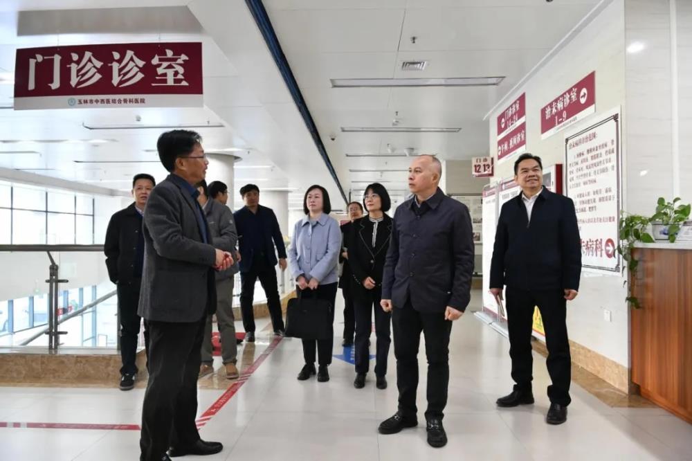 玉林市是广西唯一入选 2025 年国家中医药传承创新发展示范项目的城市,着力打造可复制推广的中医药发展 “玉林样板”。玉林市中西医结合骨科医院作为项目核心实施单位,肩负使命,奋楫前行。此番调研,亦是一次为我院中医药发展未来航程校准方向的定向导航。调研组先后参观了我院即将建设的玉林骨伤流派传承研究中心、赖祥林全国名老中医工作室、名医堂、正在建设的中医护理门诊、中医外治中心、针灸科、颈肩腰腿痛科、玉骨杏园、玉林市非物质文化遗产项目之一的夹板制作室。实地了解听取了我院陈正其书记对中医药技术、中医药人才发展、中医药服务模式、中医药管理体系的传承创新等方面的建设进展情况汇报。医院以示范项目为引领,锚定建设目标,一是强化技术传承创新,深耕“玉林骨伤”特色品牌;二是完善人才梯队建设,建设多个名老中医传承工作室,强化基层中医药人才下沉赋能;三是优化服务体系构建,打造中医药服务网络。