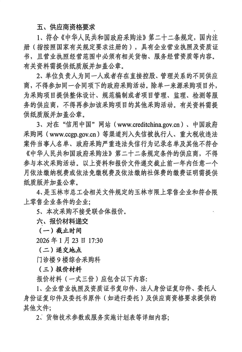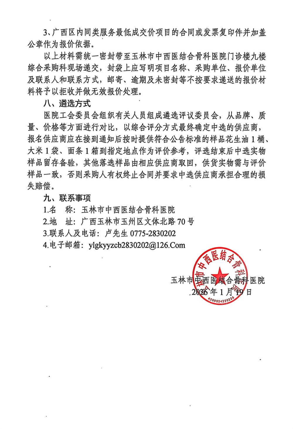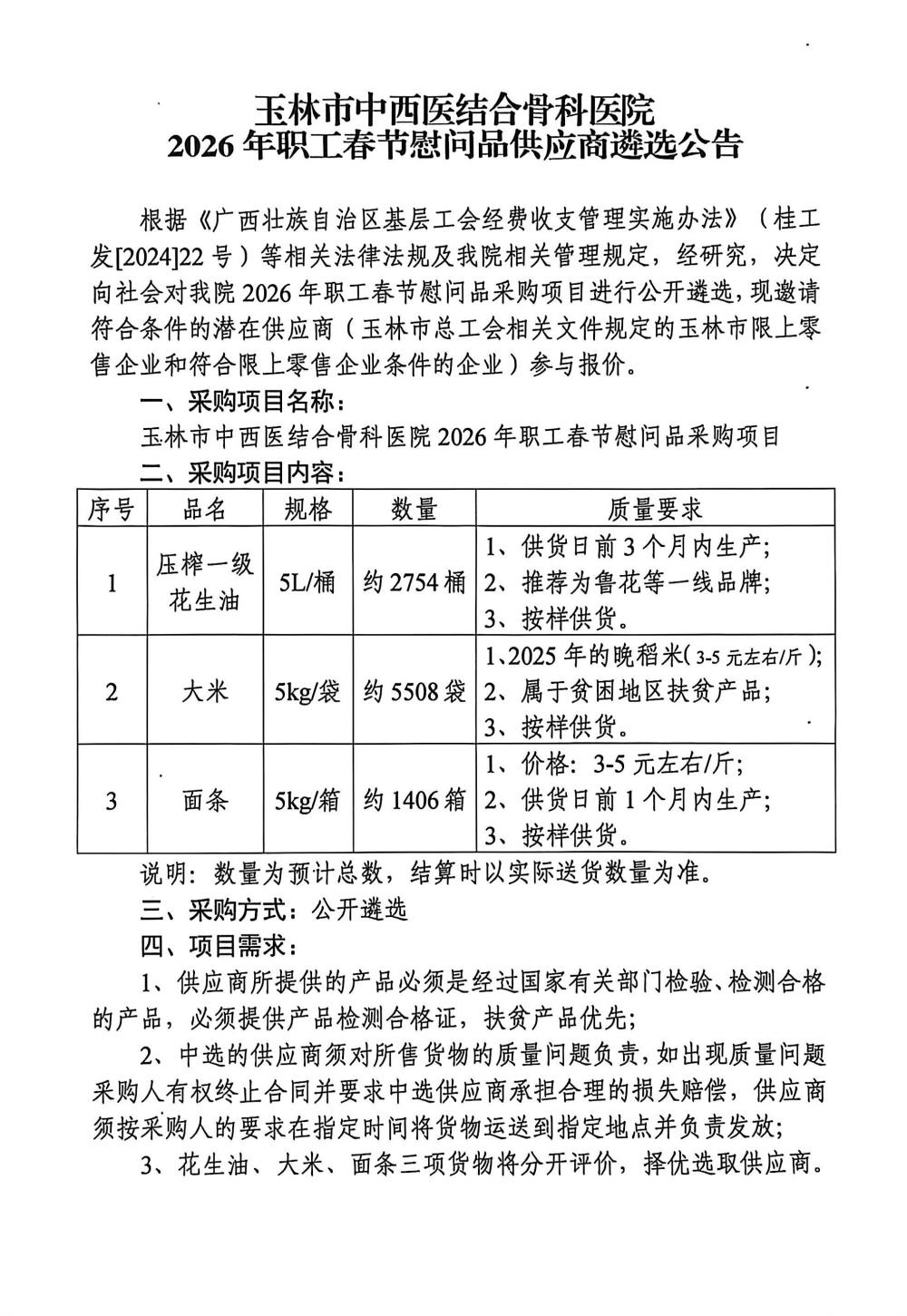 玉林市中西医结合骨科医院2026年职工春节慰问品供应商遴选公告