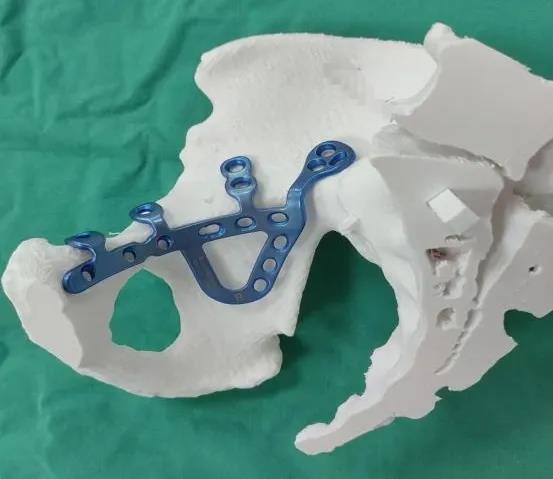 术前,骨盆科团队在我院3D实验室的支持下,为韦阿姨量身定制了1:1骨盆骨折模型及右侧半骨盆镜像对称模型,通过物理拼装与数字化模拟,详细了解骨折情况,进行手术预演,利用3D打印技术进行数学化模拟复位,精准规划钢板放置的位置与螺钉走向,这一“实体+数字”双模态规划,为手术提供了坚实保障,真正实现“术前有预案,术中零盲区”。