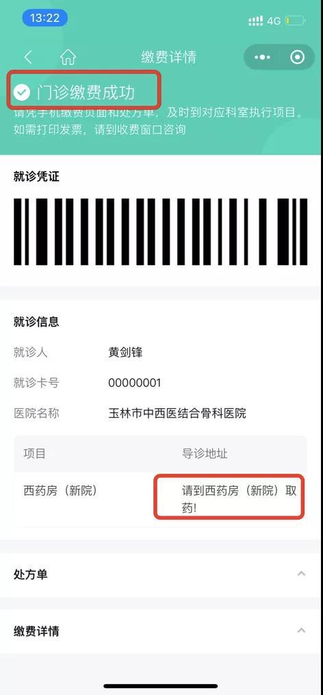 (5)缴费成功后按照页面的“导诊地址”去相应科室执行即可。(如果遇到异常或者其他需要退费的情况请咨询医护人员。)
