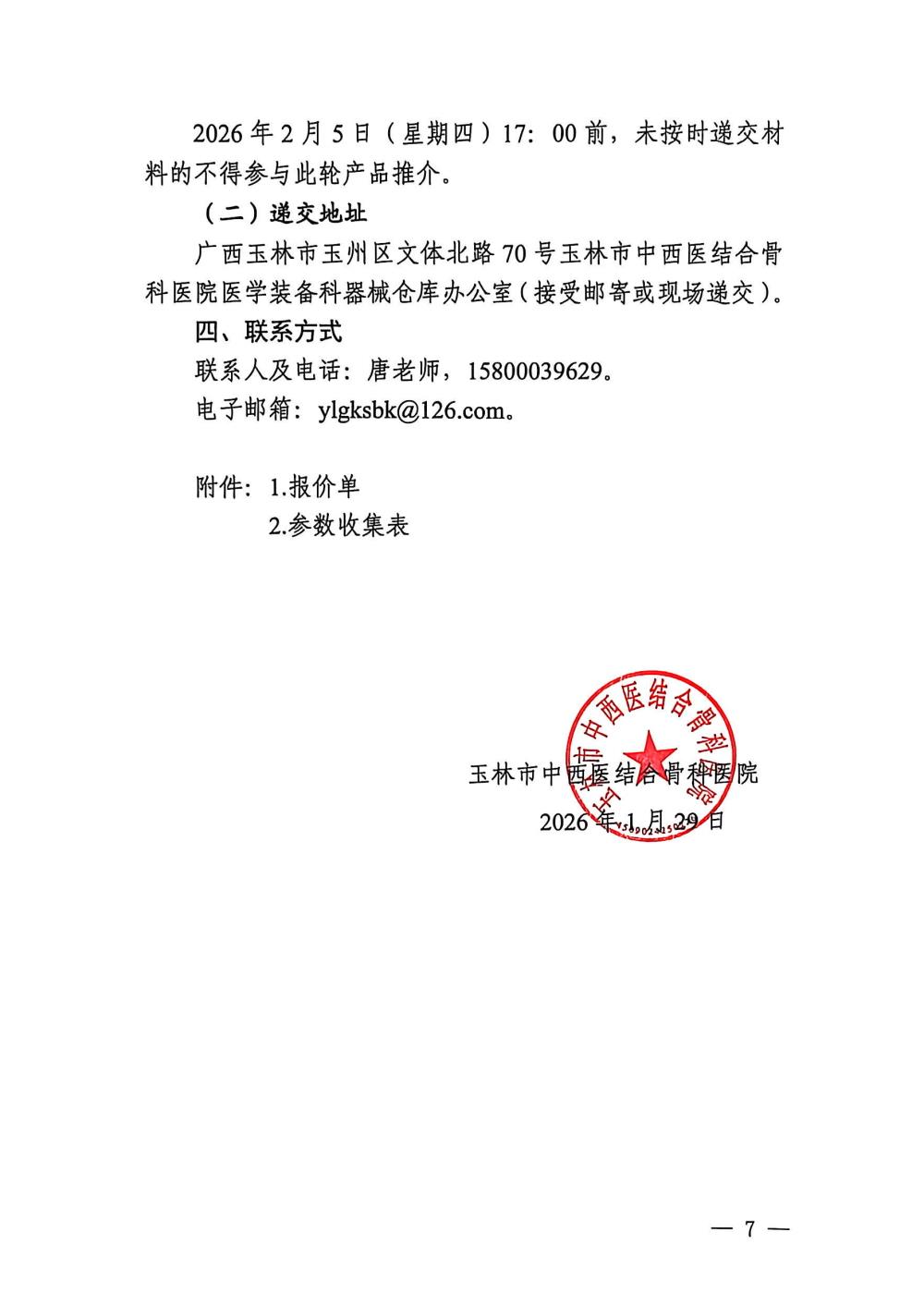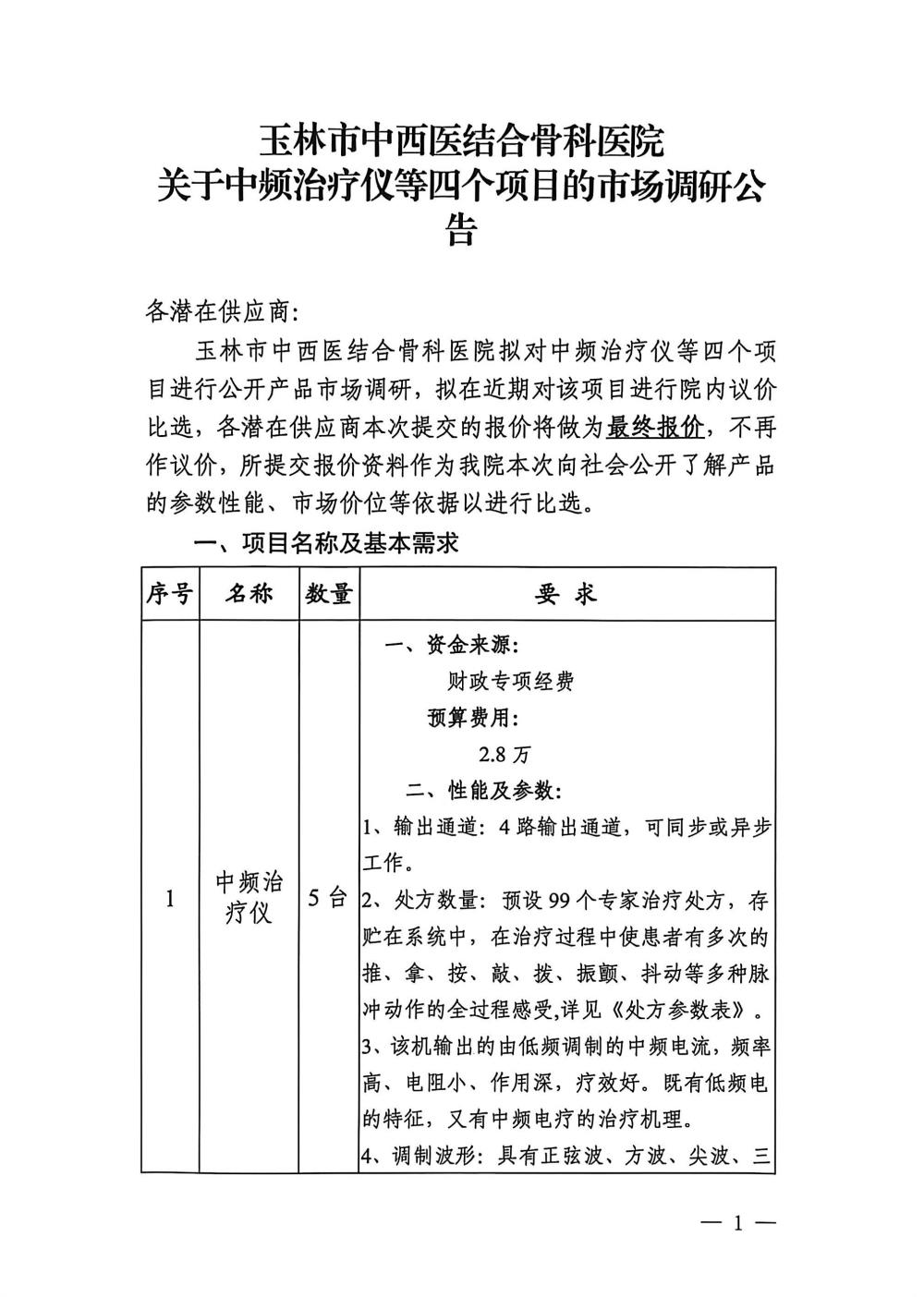 玉林市中西医结合骨科医院关于中频治疗仪等四个项目的市场调研公告