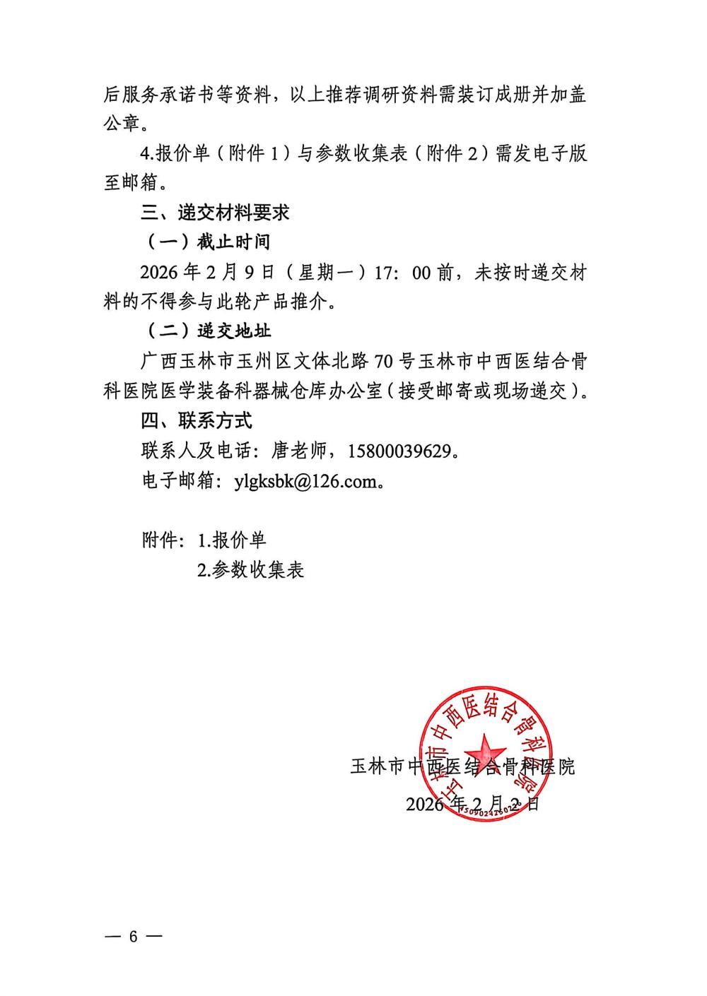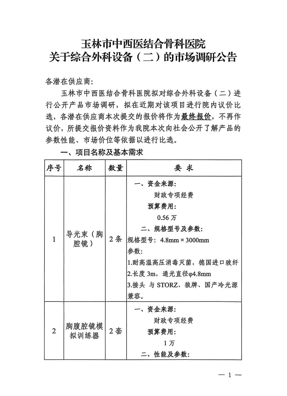 玉林市中西医结合骨科医院关于综合外科设备(二)的市场调研公告