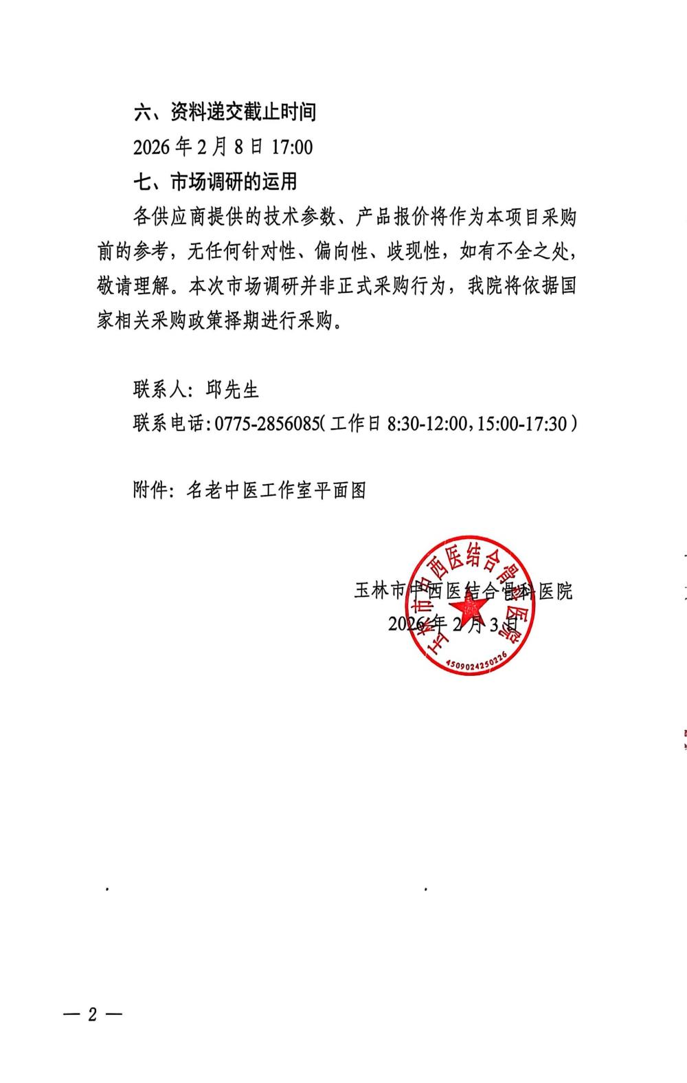 玉林市中西医结合骨科医院名老中医工作室中医药文化环境氛围提升项目市场调研(询价)公告