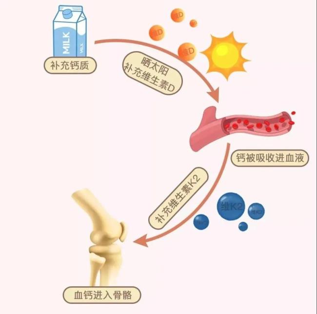 首先,服用钙剂最好搭配维生素D。因为维生素D和钙是一对好搭档,维生素D能够促进钙的吸收,如果维生素D缺乏的话,钙的吸收率就会下降。同时可以适当地增加一些日光照射的时间,充分促进体内维生素D的合成。 除此之外,还需要补充维生素K2。研究显示,维生素K2能够促进骨钙素的羧化,促进成骨细胞的活动,抑制破骨细胞活动,以促进钙在骨骼的沉积,并且可以防止由于高钙饮食而造成的血管钙化。