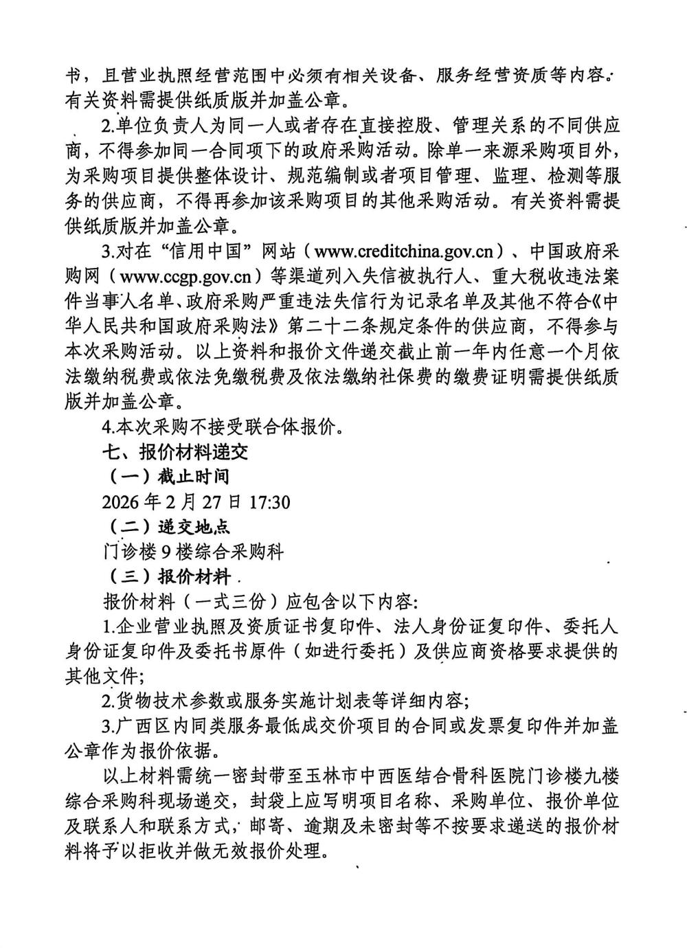 玉林市中西医结合骨科医院院内制剂洗三方洗剂研发项目采购公告