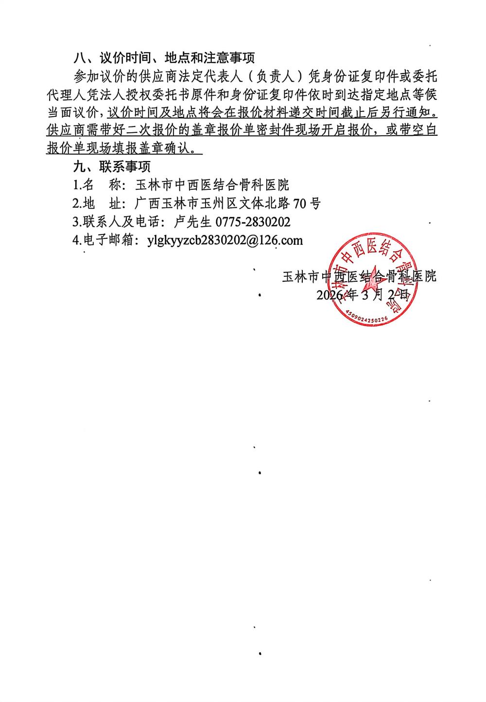 玉林市中西医结合骨科医院韧带重建工具采购项目采购公告