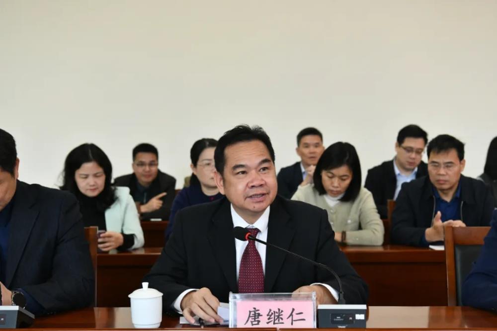 医院党委书记陈正其在致辞中表示,潘勇卫教授工作室的落户,是医院精准对接优质医疗资源、强化专科建设、推动中西医结合骨科事业高质量发展的重要举措,更是惠及桂东南群众的民生实事。医院将以工作室为载体,充分依托潘勇卫教授的技术优势、学术资源和人才影响力,搭建高水平诊疗、教学、科研平台,助力医院骨科团队技术能力、科研水平全面提升,完善中西医结合诊疗体系,进一步扩大医院在桂东南及周边地区的影响力。 ※医院党委副书记、院长唐继仁致辞
