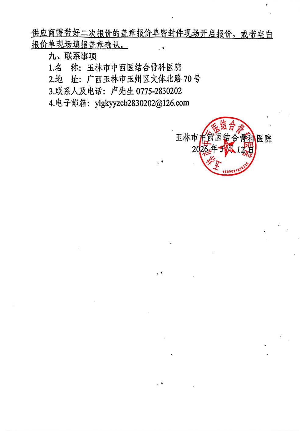 玉林市中西医结合骨科医院关节内窥镜及其他配件采购项目采购公告