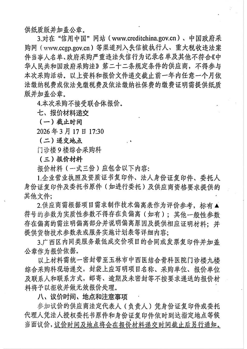 玉林市中西医结合骨科医院红光治疗仪采购项目采购公告