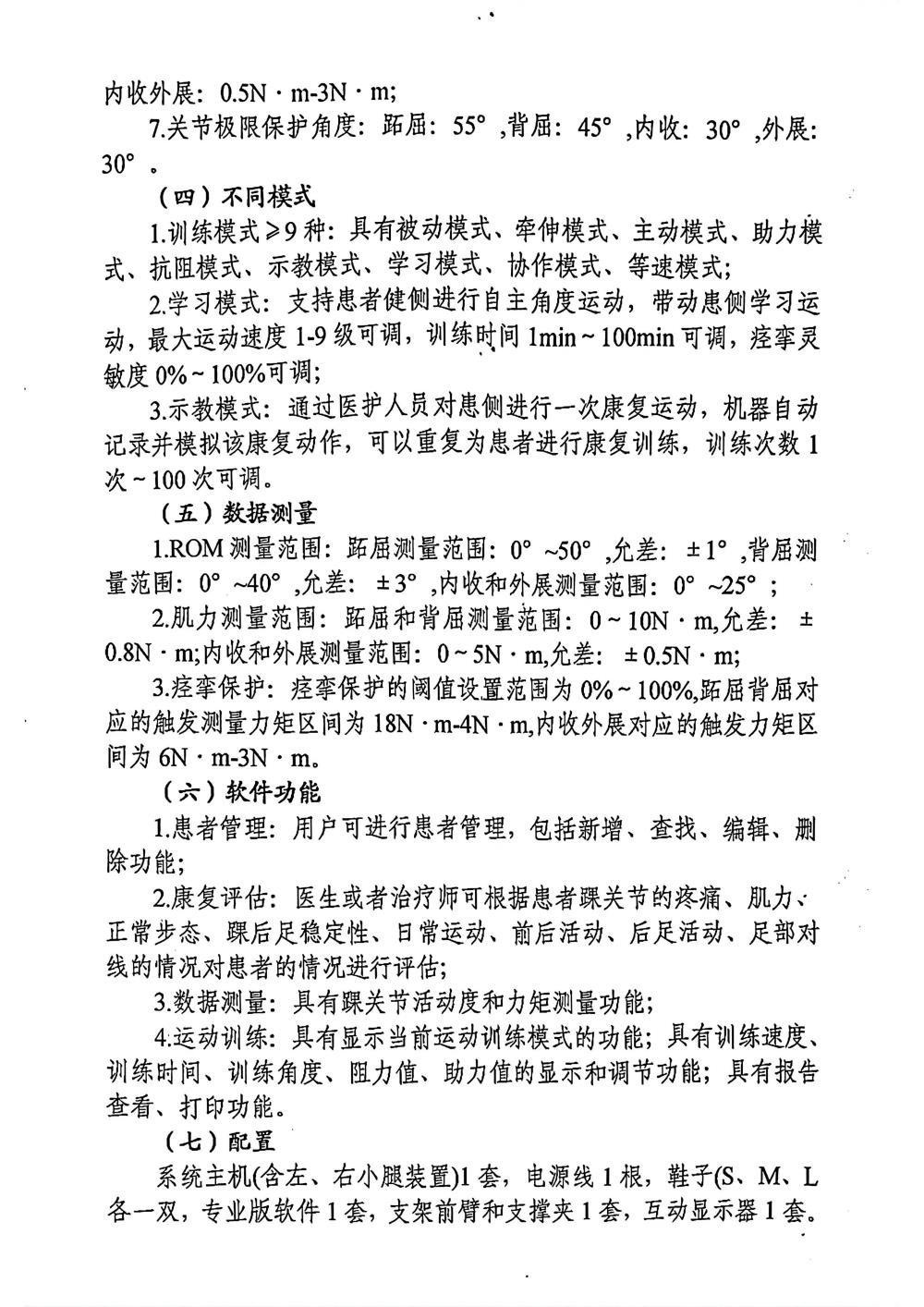 踝关节康复训练仪需求参数