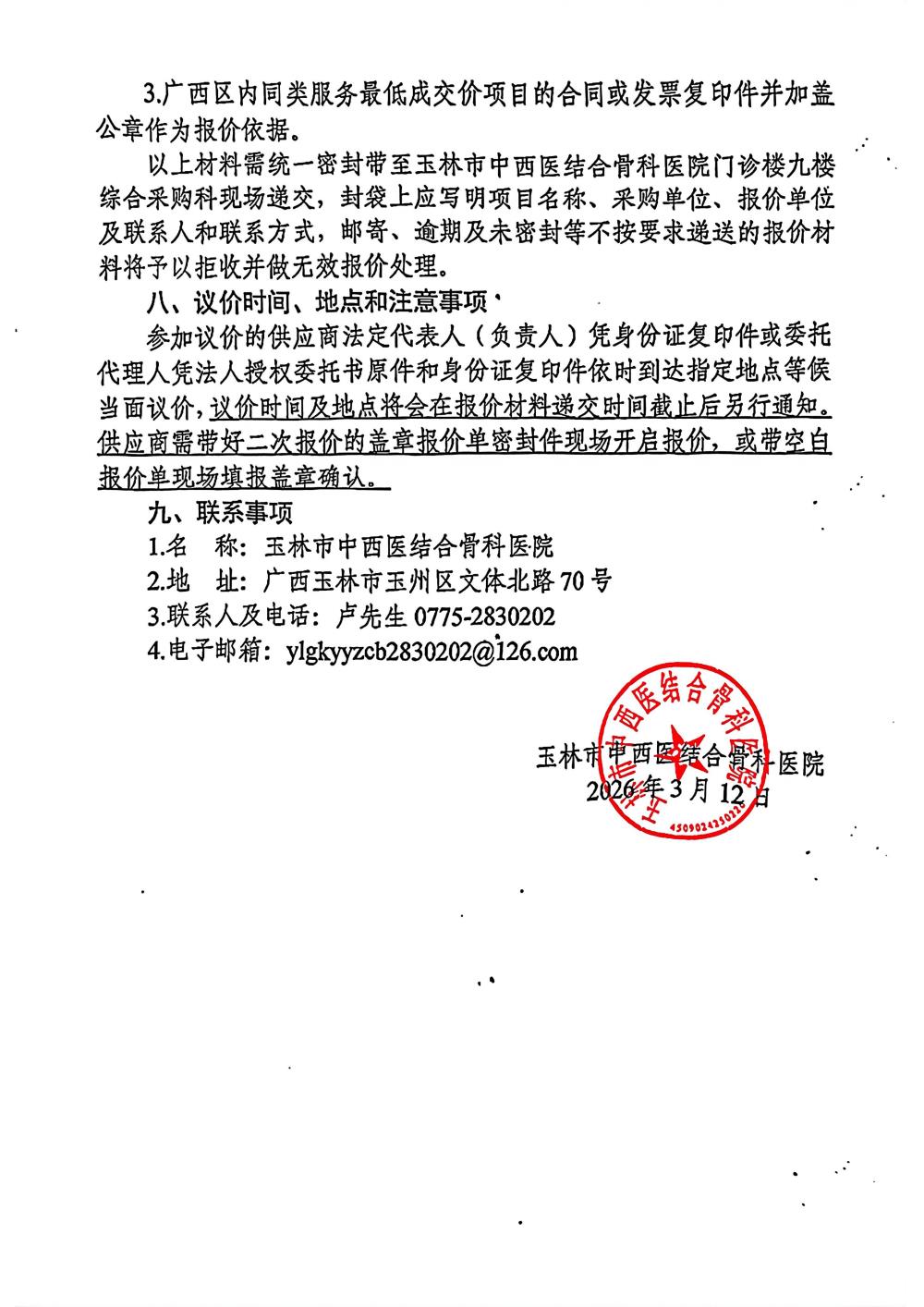 玉林市中西医结合骨科医院红光治疗仪采购项目采购公告