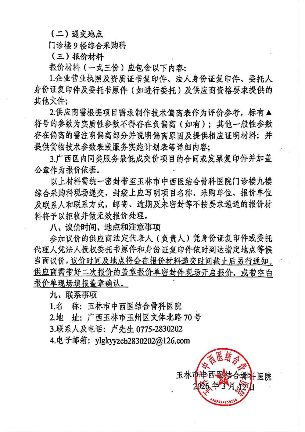 玉林市中西医结合骨科医院脊柱椎间孔镜微创手术器械采购项目采购公告