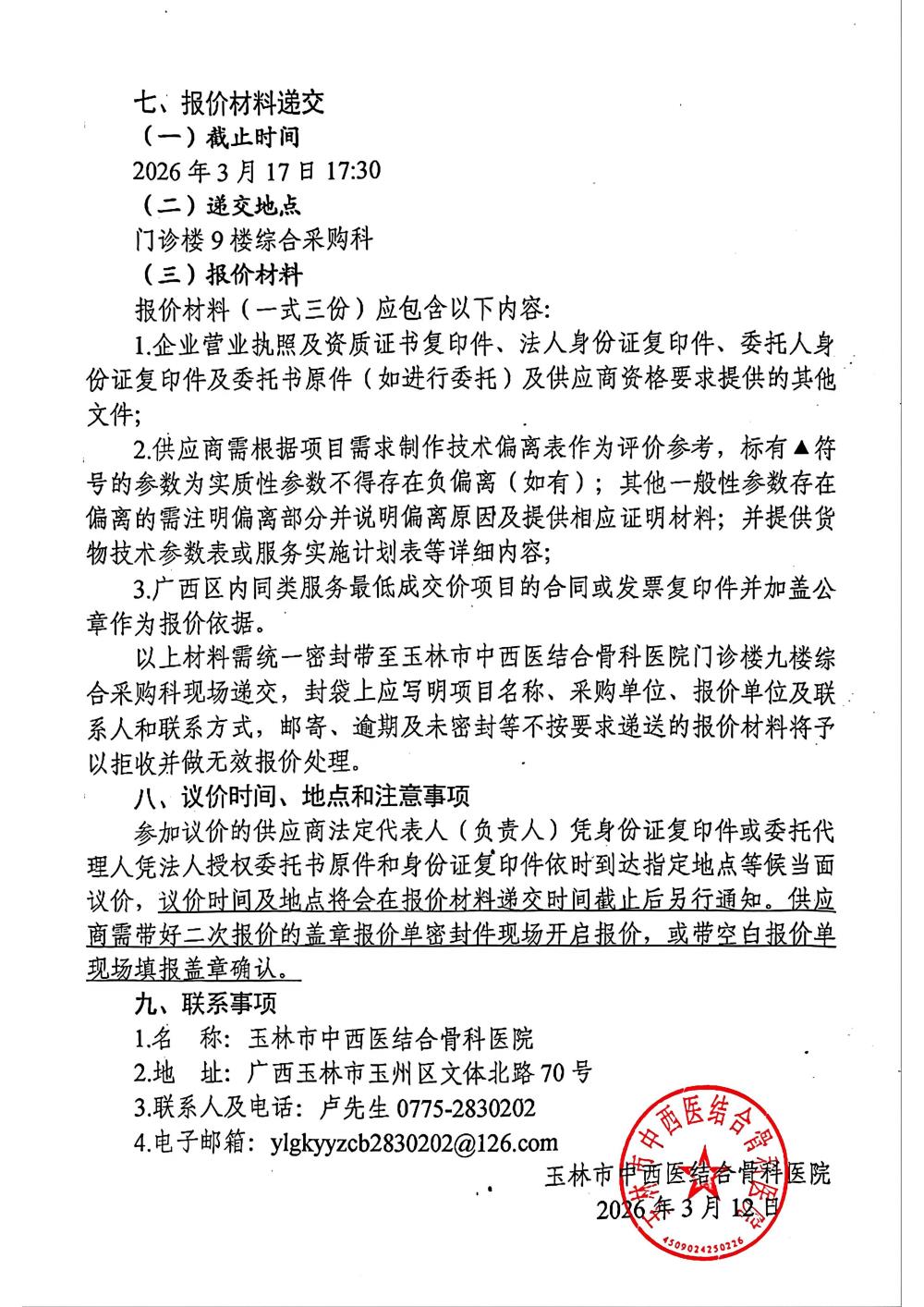 玉林市中西医结合骨科医院体态评估及脊柱侧弯筛查系统采购项目采购公告