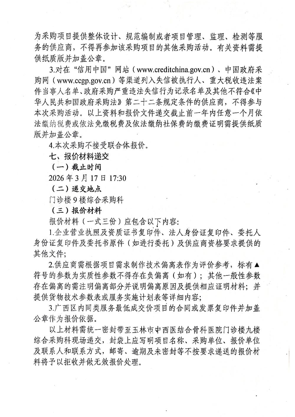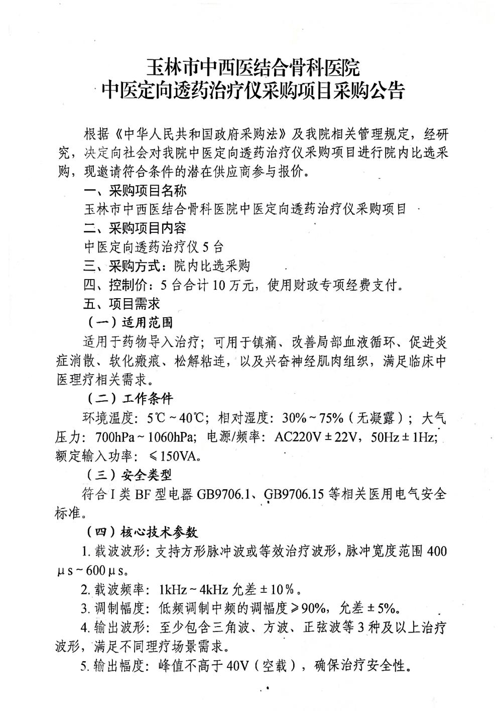 玉林市中西医结合骨科医院中医定向透药治疗仪采购项目采购公告