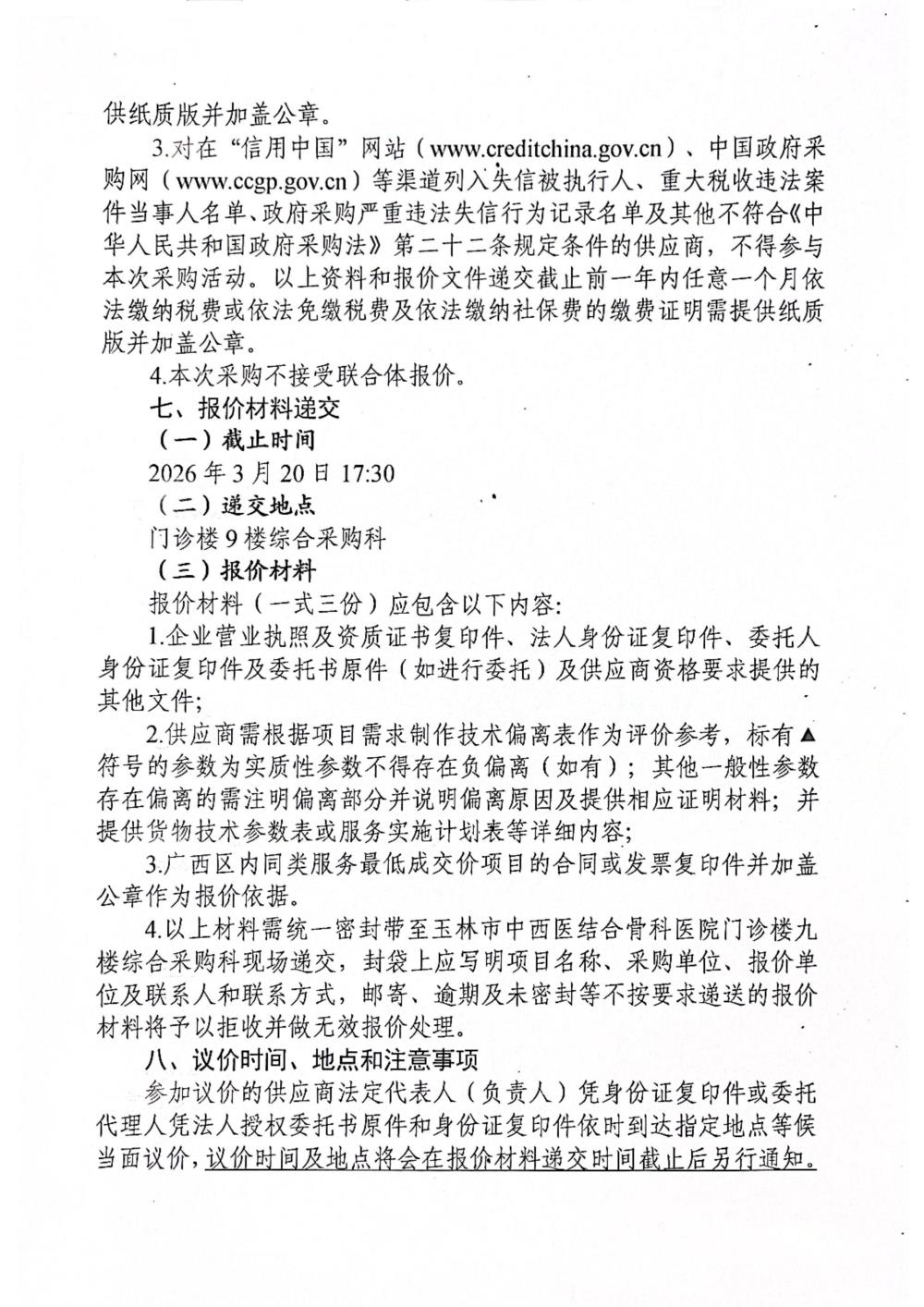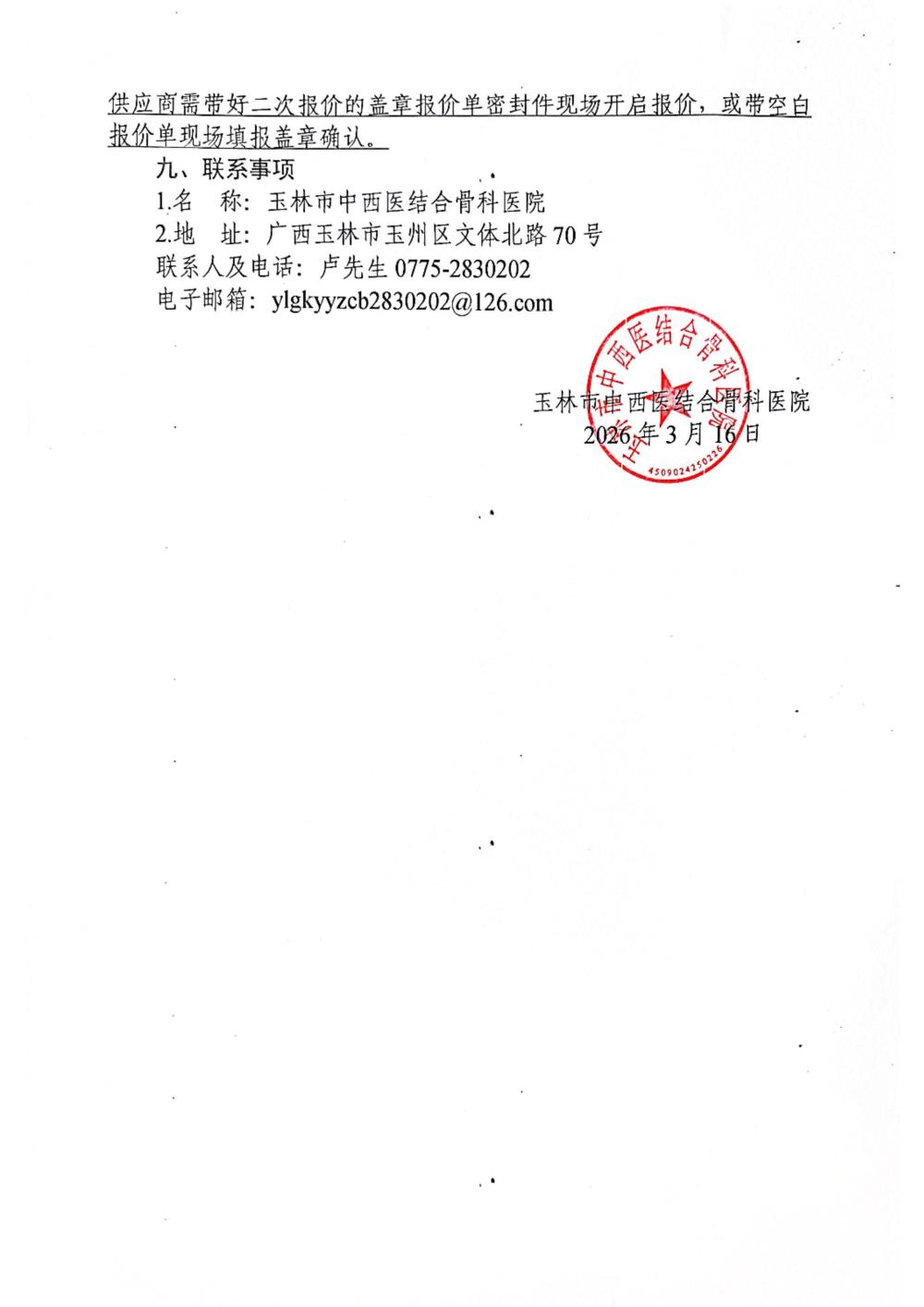玉林市中西医结合骨科医院加温毯采购项目采购公告
