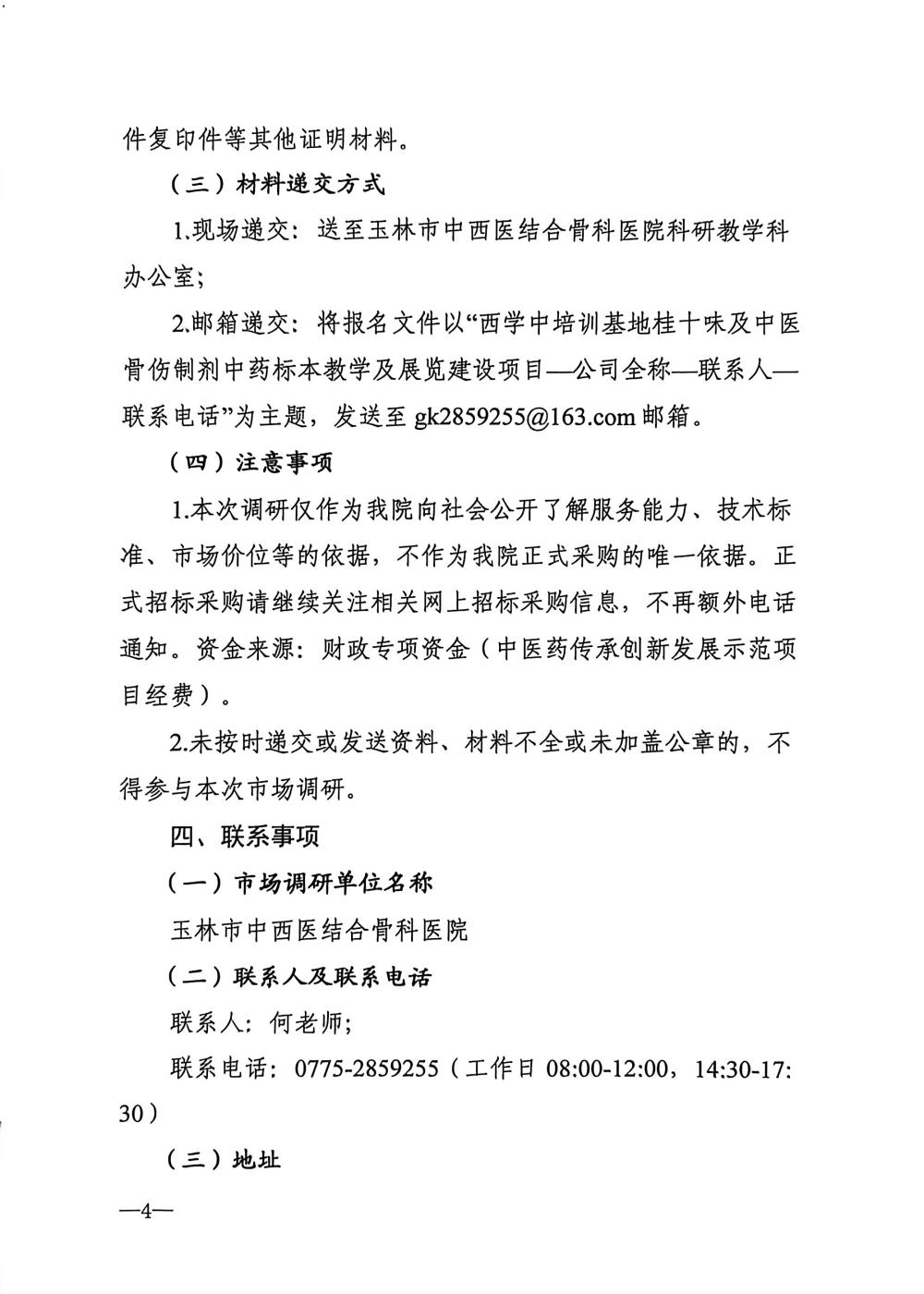 玉林市中西医结合骨科医院 西学中培训基地桂十味及中医骨伤制剂中药标本教学及展览建设项目市场调研公告