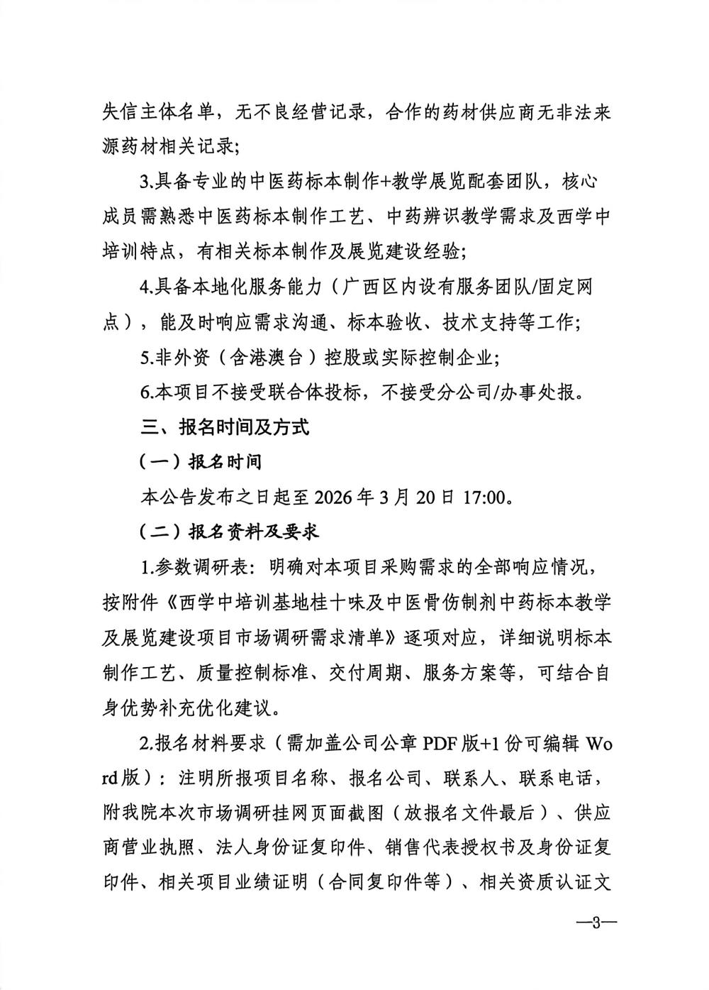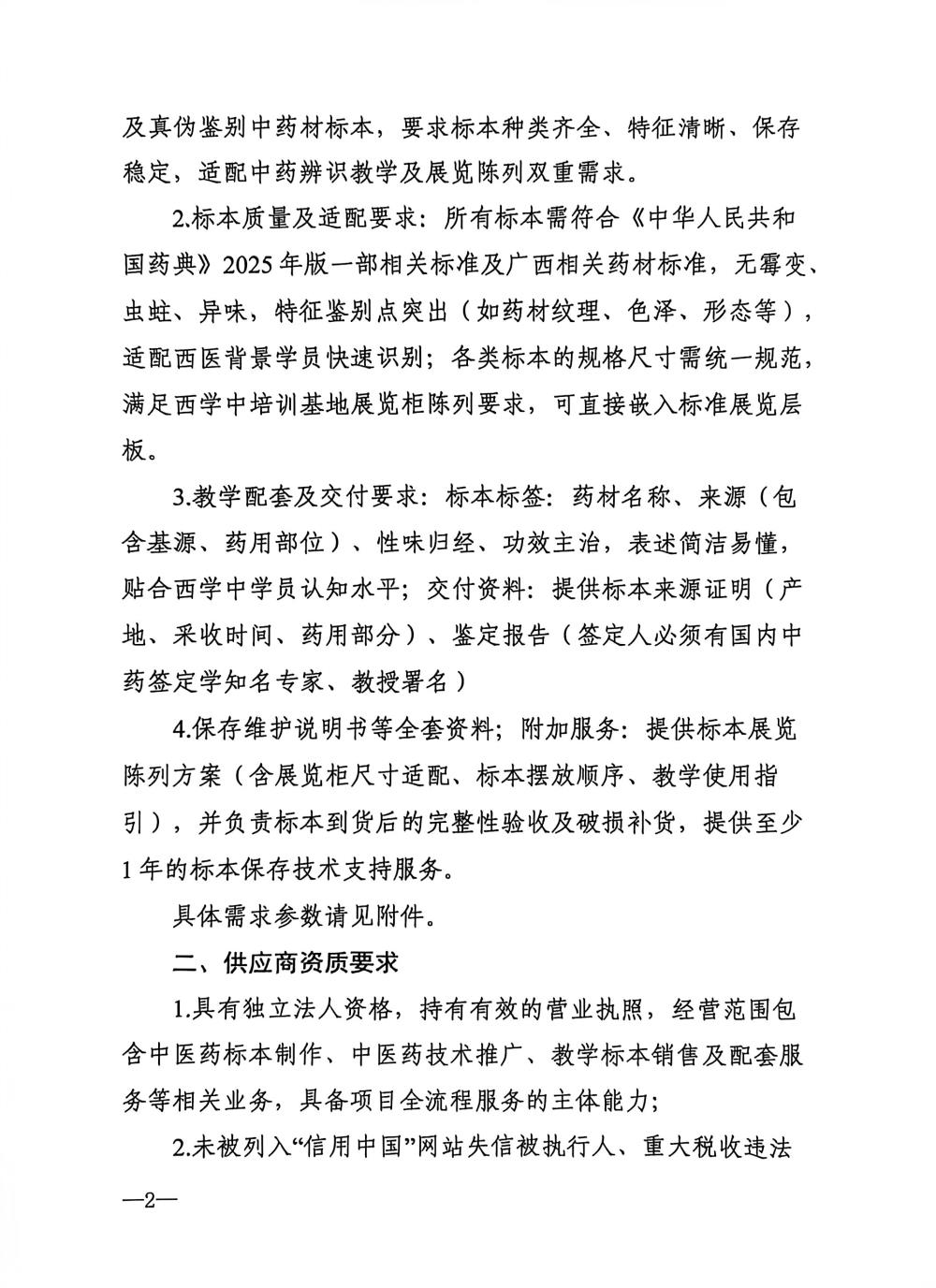 附件-西学中培训基地桂十味及中医骨伤制剂中药标本教学及展览建设项目市场调研需求清单