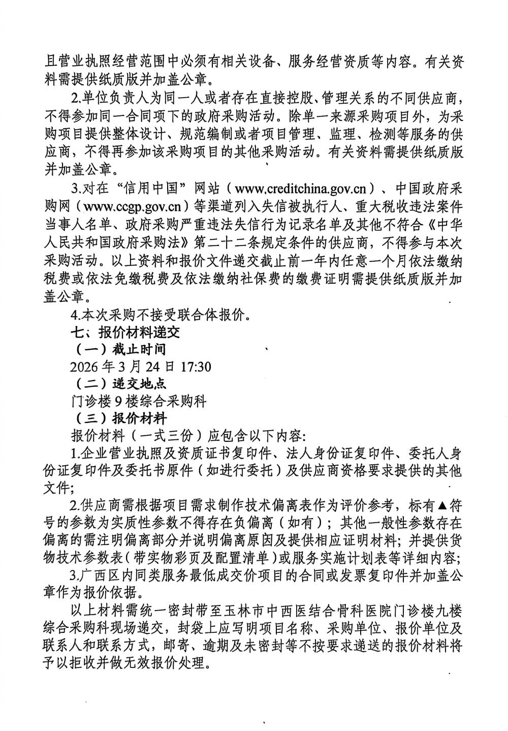 玉林市中西医结合骨科医院中医护理门诊硬件设备及环境升级改造采购公告