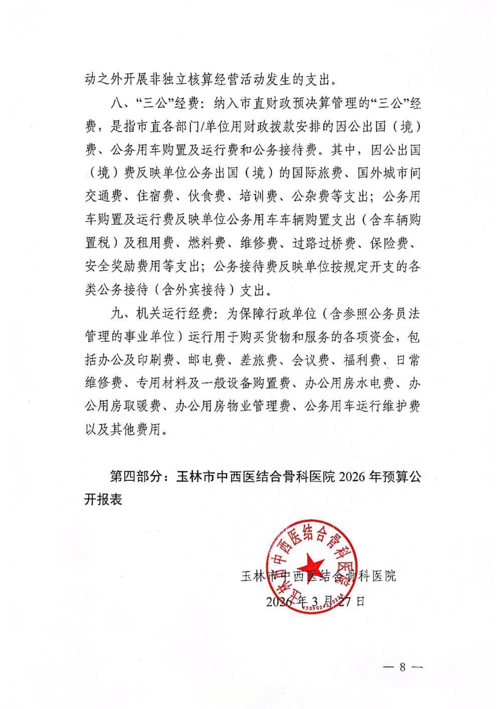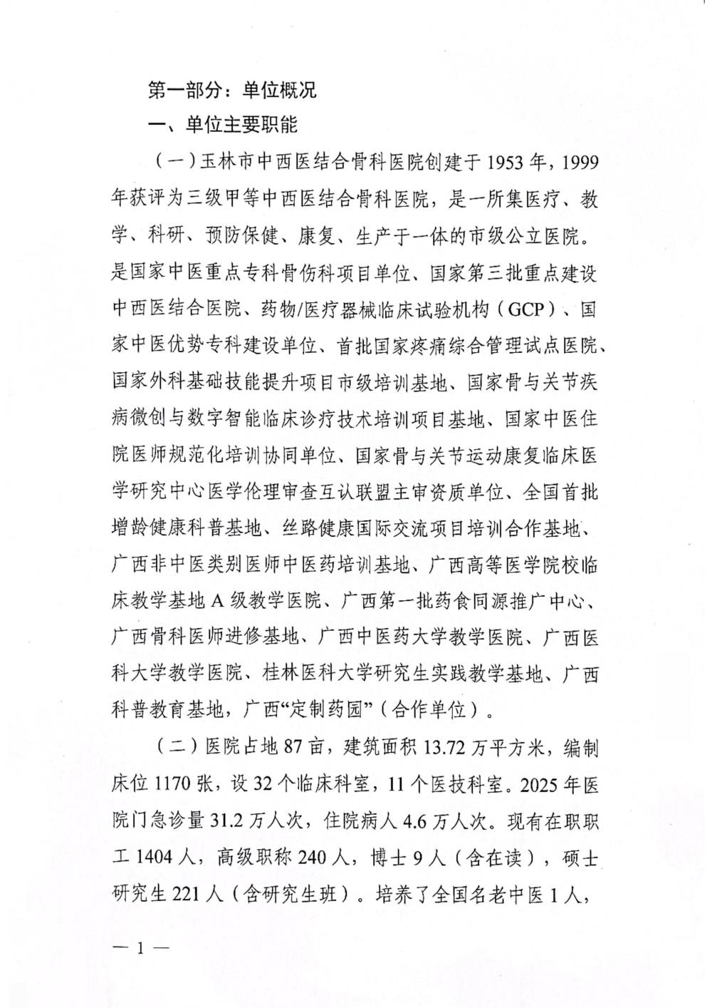 玉林市中西医结合骨科医院2026年单位预算公开说明