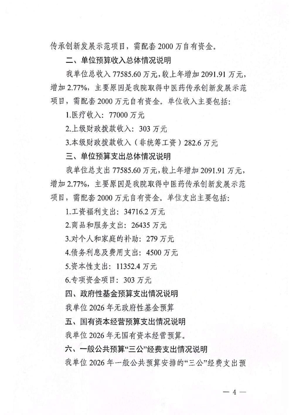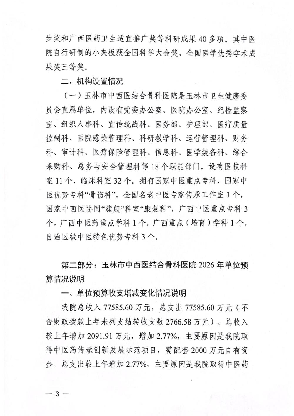 玉林市中西医结合骨科医院2026年预算批复表