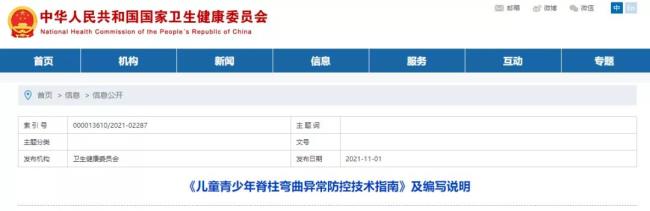 近日为加强儿童青少年脊柱弯曲异常防控工作国家卫生健康委疾控局组织编写了《儿童青少年脊柱弯曲异常防控技术指南》(以下简称《指南》)以指导规范、科学地开展儿童青少年脊柱弯曲异常流行病学调查、筛查及防控工作