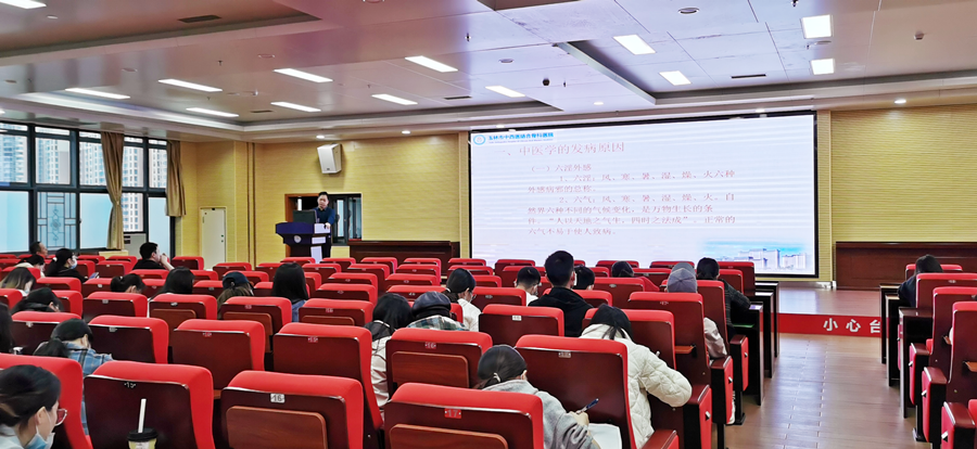 中医药学凝聚着深邃的哲学智慧和中华民族几千年的健康养生理念及实践经验,是中国古代科学的瑰宝。为进一步深化医院中医药文化建设,夯实我院临床医务人员的中医理论基础,促进中医药传承创新发展。3月23日下午,在我院学术报告厅,第二季“玉林骨科学术大讲堂”系列讲座由玉林市中西医结合骨科医院副院长李开静主任医师主讲。教务科副科长梁周主持讲座,全院医护人员、规培生、进修生、实习生到场听讲。