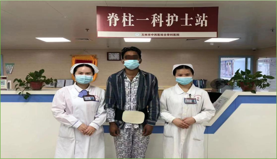 近日,玉林市中西医结合骨科医院脊柱一科收治了一位来自孟加拉国的外国友人,带他来的是脊柱一科的“老熟人”——莫阿姨。原来莫阿姨在脊柱一科治好了严重的腰间盘突出症,现在又带着外国的女婿来治病了。