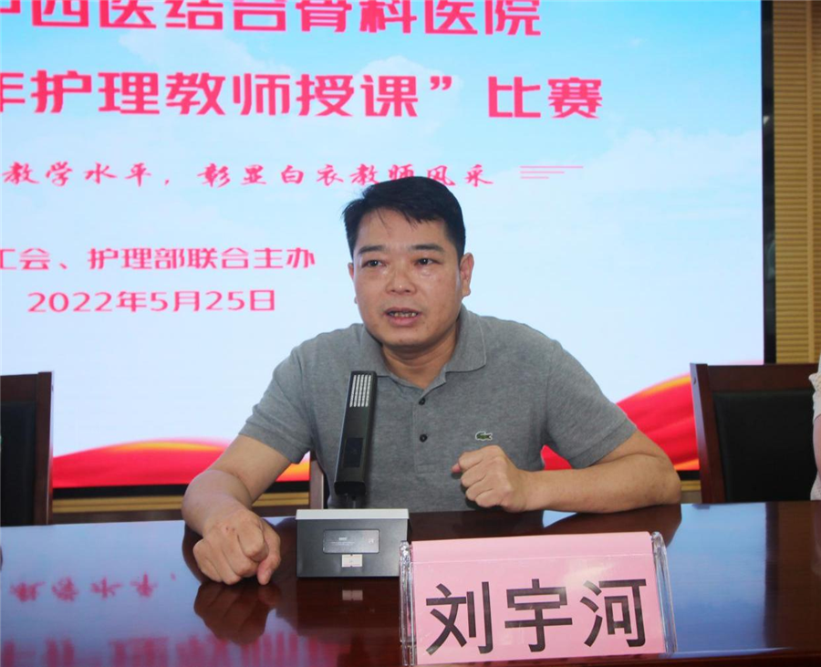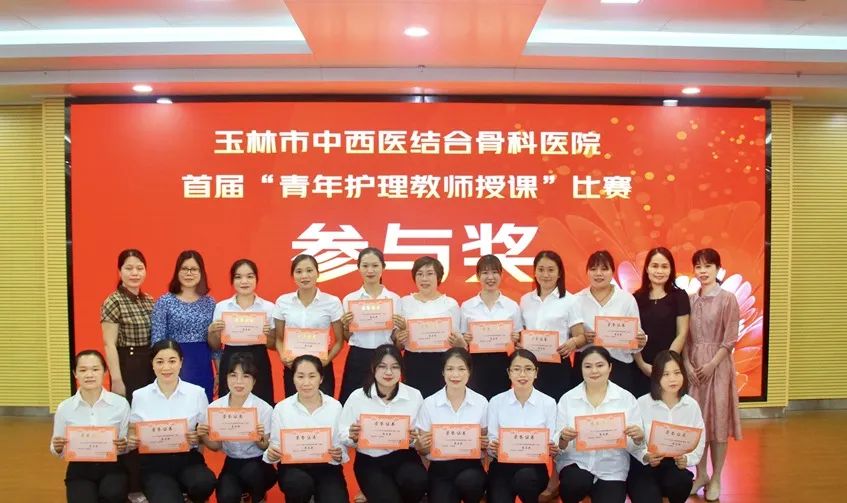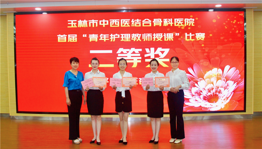 选手授课完毕,评委专家们从教学内容、教学组织、语言教态和教学特色、课件制作等方面结合选手们具体表现进行了评定并现场评分。 整场比赛精彩纷呈,经过激烈角逐、评委的综合客观的评价与评分,我院覃小丽、张宝文荣获一等奖;杨丽平、蓝玉杏、陈婷荣获二等奖;朱雯怡、张小丽、陈瑶瑶、欧艳、庞婷、关敏惠、庞艳萍、周小玲荣获三等奖。 在最后,护理部主任梁波发表了总结讲话。她指出“护理授课比赛是技能的比拼,也是经验的交流”,她给予了参赛选手的总体表现充分的肯定。通过本次比赛活动,让参赛选手们得到了很好的锻炼,培养了护理青年教师严谨笃学,爱岗敬业精神,提高业务素质和教学水平,营造积极向上的教学研讨氛围,增进护理人员之间的经验交流,进而全面提高我院护理教学质量。同时针对选题、讲课技巧、师生互动、幻灯片制作、职业素养等方面提出了中肯的意见和殷切的希望。 “一片冰心育桃李芬芳,满腔热情为杏坛耕耘”,护理教学之路任重而道远,只有培育出优秀的临床护理带教老师,才能培养出优秀的护理事业接班人。玉林市中西医结合骨科医院护理部正在用实际行动履行着“护理”的职责,践行“教书育人”的使命,为健康玉林事业培养深厚人文底蕴、专业精湛、崇高职业素养的护理人才!