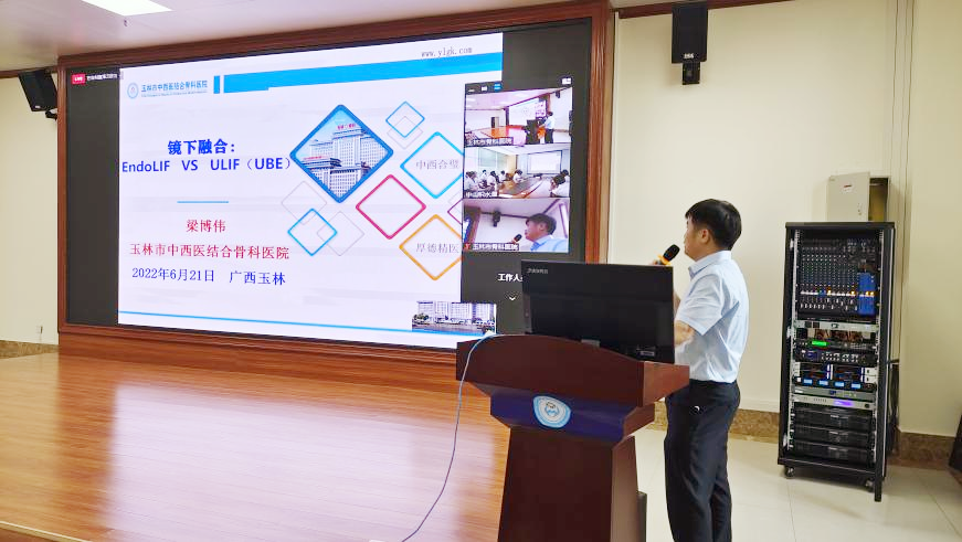 近日,为了加强医院学术交流,玉林市中西医结合骨科医院骨病股骨头坏死专科与中山积水潭医院联合举办线上联合查房交流会。此次活动由北京积水潭医院、中山积水潭骨科医院、玉林市中西医结合骨科医院,进行线上多方学术交流,为全国的骨科医生提供了更加便捷的交流学习方式。会议由中山积水潭骨科医院执行院长李庭教授和我院骨病股骨头坏死专科谢卫宁主任共同主持。本次会议邀请到了我院梁博伟院长、骨病股骨头坏死科谢卫宁主任,中山积水潭骨科医院脊柱科主任袁强教授、矫形科主任及松洁教授为大家授课。玉林市中西医结合骨科医院梁博伟院长讲解:《镜下融合:EndoLIF VS ULIF(UBE)》。梁博伟院长首先介绍了脊柱学科的发展趋势,从技术特点、技术3D演示,以及EndoLIF、UBE的适应症、禁忌症等方面阐述了三种内镜技术,通过四个典型病例进行剖析并总结出:1.EndoLIF、UBE都是治疗腰椎退行性疾病的安全、有效、微创的方法;2.二者学习曲线长,各自有优缺点;3.保证减压充分,可靠融合固定(近期看减压,远期看融合);4.严格把握适应症和禁忌症。