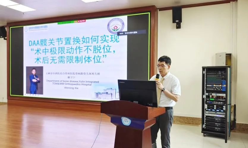 玉林市中西医结合骨科医院骨病股骨头坏死专科主任谢卫宁教授讲解《如何实现DAA髋关节置换“术中极限动作不脱位,术后不需要限制体位”》。谢卫宁教授首先介绍了髋关节的DAA入路的优势、“囊内”置换的理念、髋关节解剖,紧接着通过手术视频阐述了手术操作关键要领,并通过术后随访资料展示了髋关节疾病患者采用DAA入路手术后能够获得良好的功能。